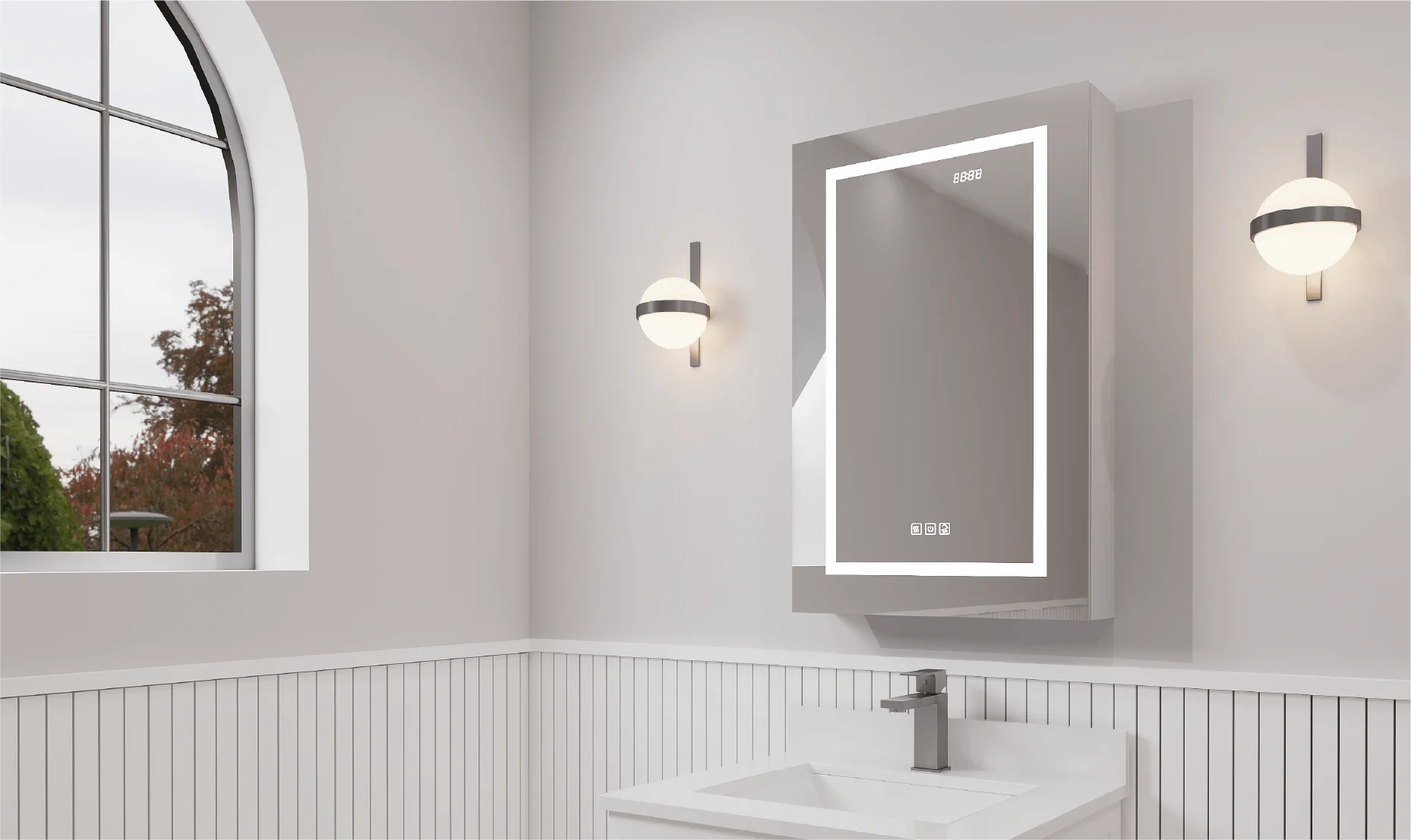 The Ayna LED Medicine Cabinet blends sleek, minimalistic design with intelligent LED smart features, enhancing both aesthetics and functionality for a modern grooming experience.