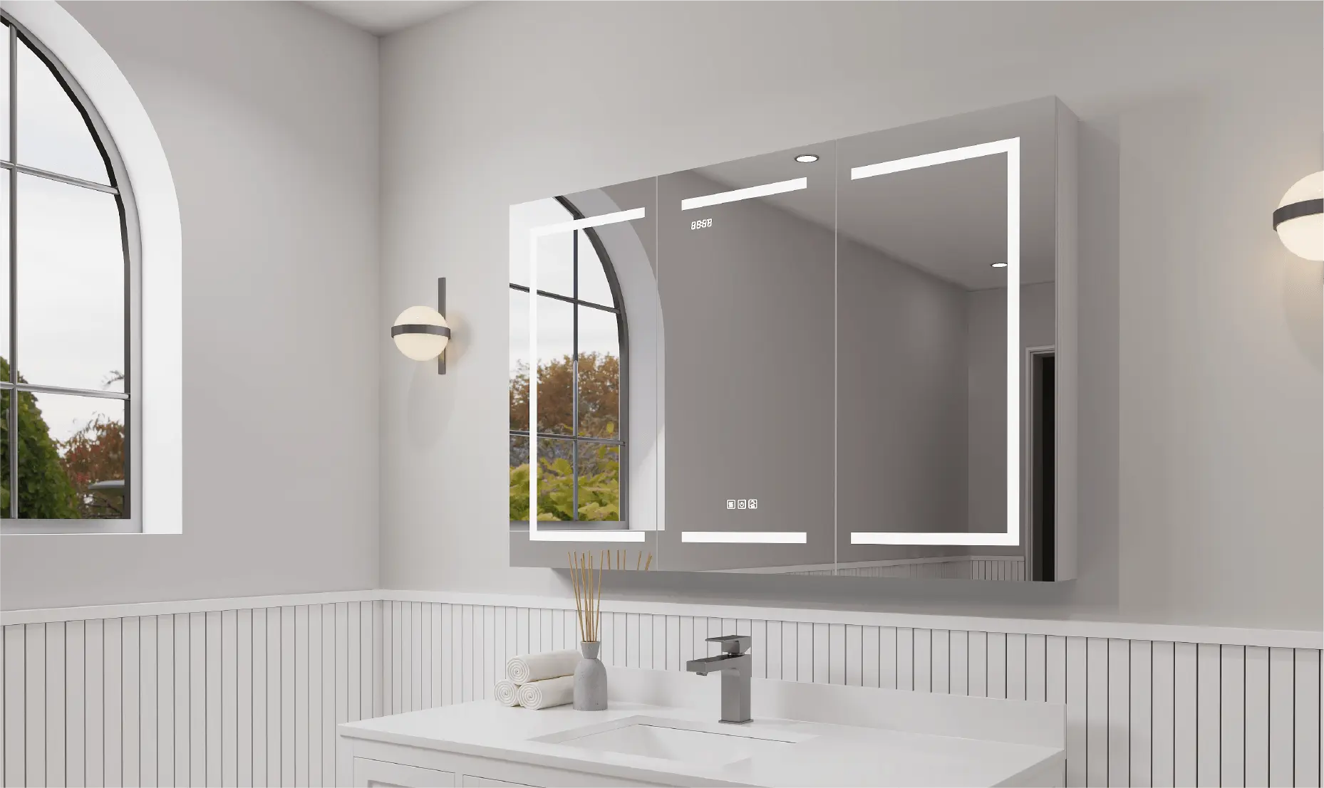 The Ayna LED Medicine Cabinet blends sleek, minimalistic design with intelligent LED smart features, enhancing both aesthetics and functionality for a modern grooming experience.