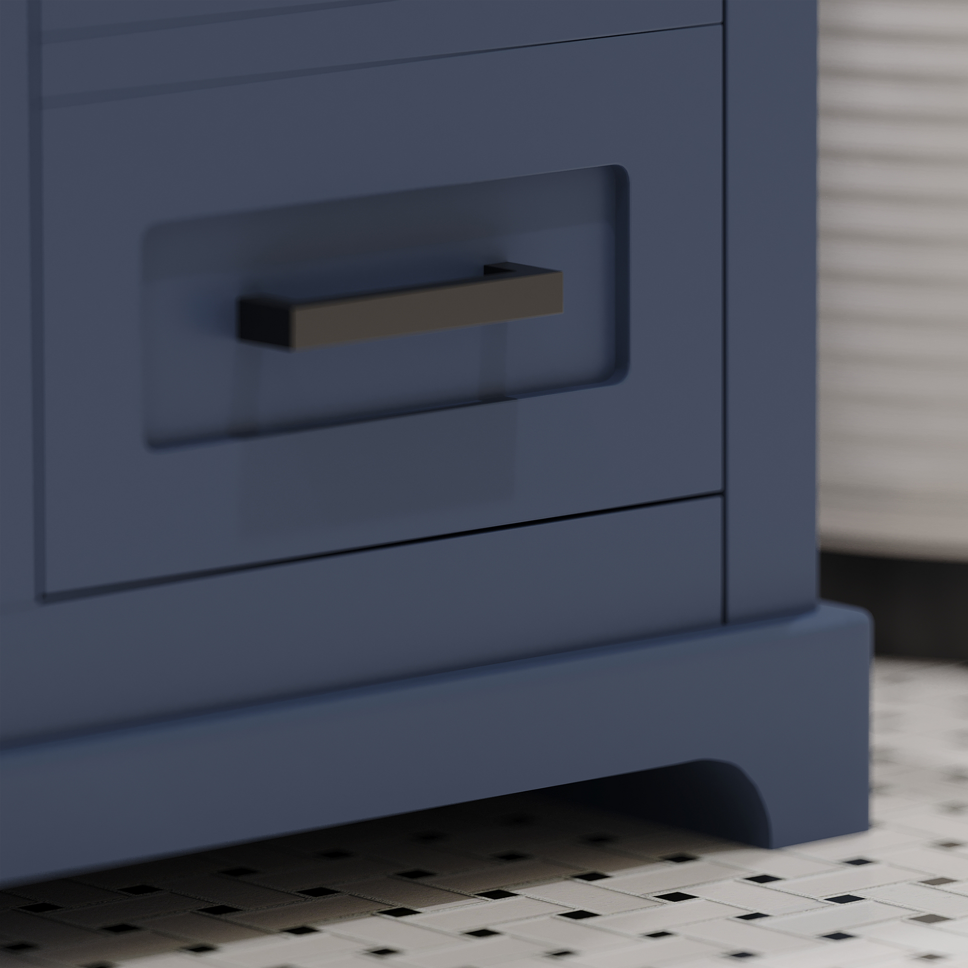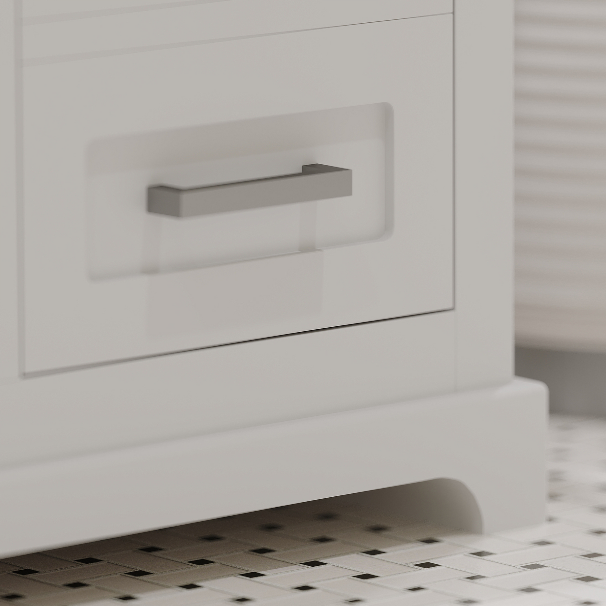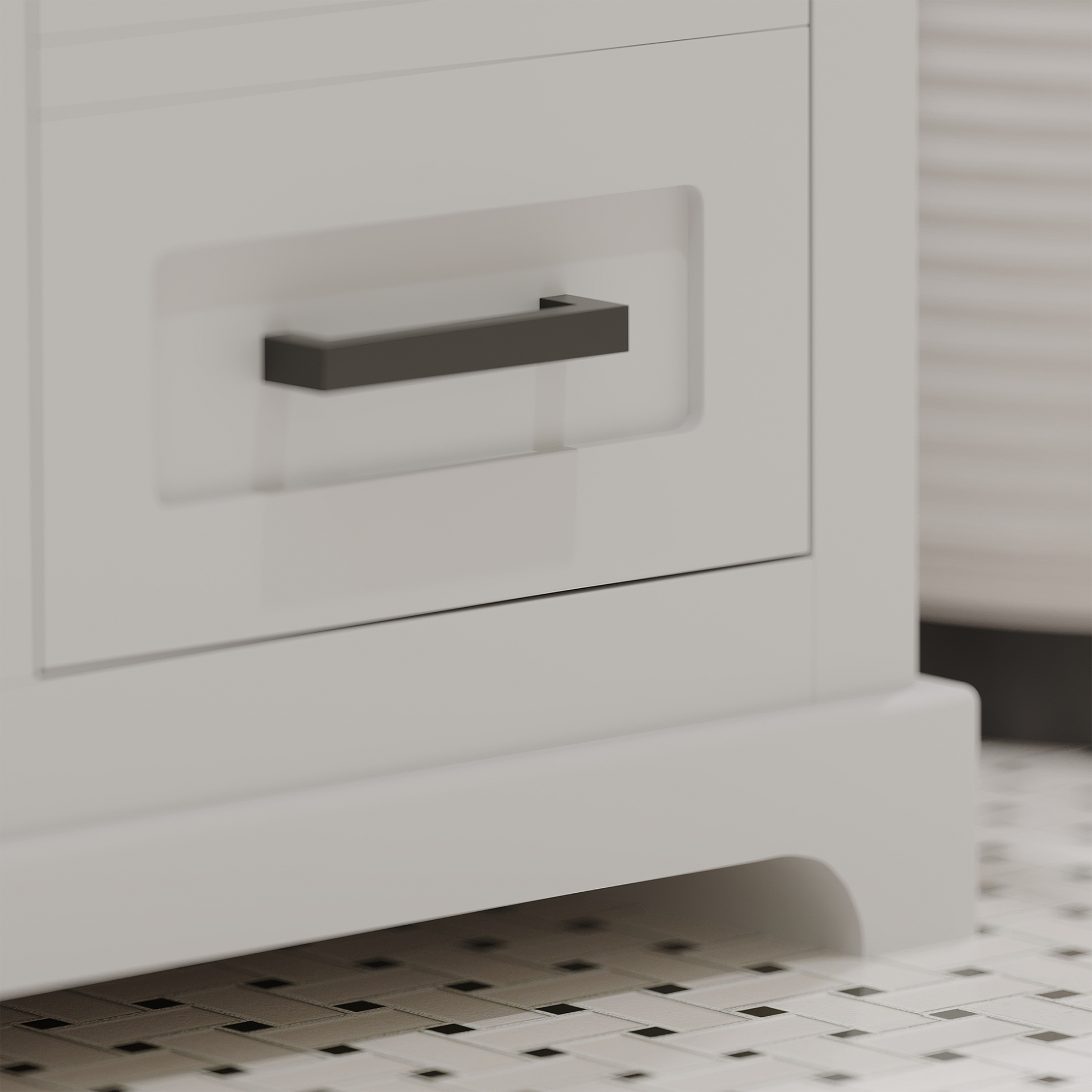 Features & Functionality:This bathroom vanity has a standard but highly convenient design, designed for modern American homes. Complete with smart-closing hinges and high density, sound resistant drawers. The large drawers fit all the modern toiletries, such as electric toothbrushes, skincare organizers, hair styling tools, luxurious bath products, etc. Its sturdy legs ensure a balanced structure even on uneven surfaces. This enhances stability, prevents wobbling, and contributes to its durability, making it a stylish and practical addition to every contemporary bath space contemporary bath space.