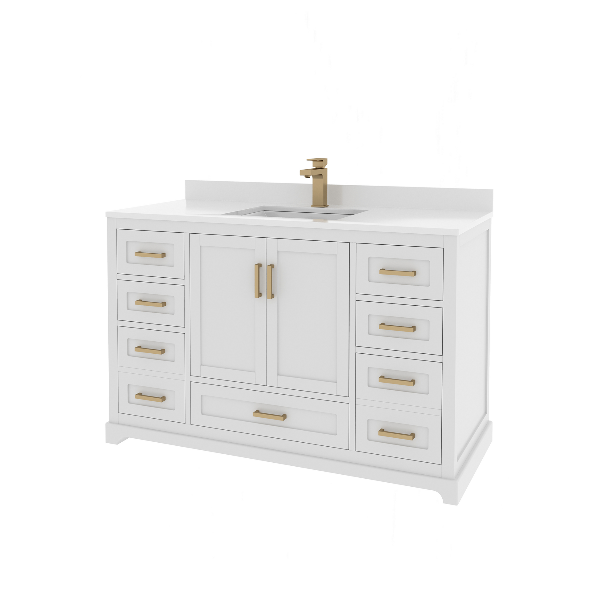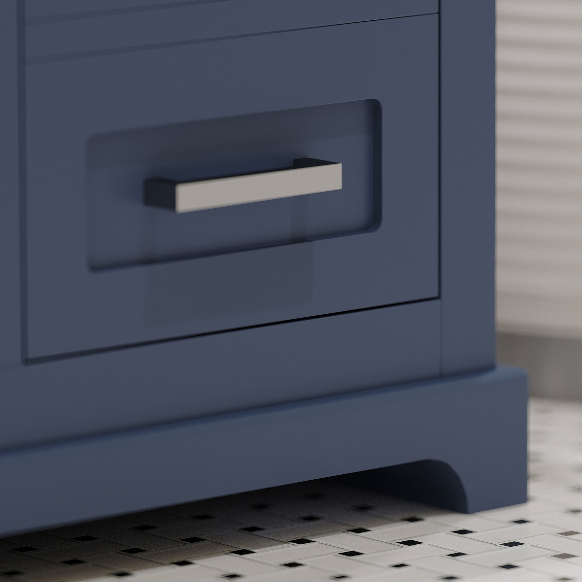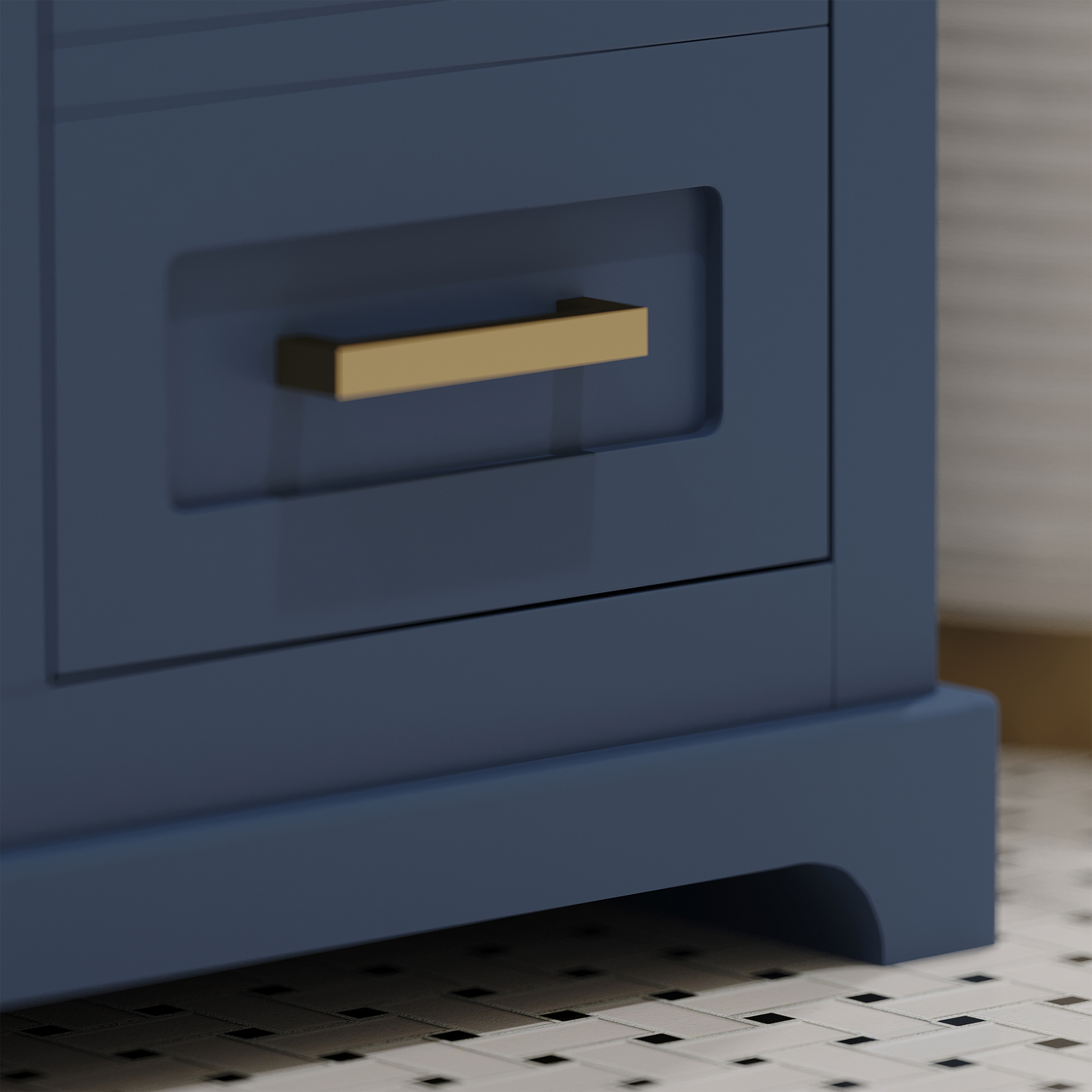 Features & Functionality:This bathroom vanity has a standard but highly convenient design, designed for modern American homes. Complete with smart-closing hinges and high density, sound resistant drawers. The large drawers fit all the modern toiletries, such as electric toothbrushes, skincare organizers, hair styling tools, luxurious bath products, etc. Its sturdy legs ensure a balanced structure even on uneven surfaces. This enhances stability, prevents wobbling, and contributes to its durability, making it a stylish and practical addition to every contemporary bath space contemporary bath space.