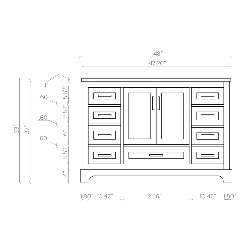 Cabinet Dimensions: 47.25"W x 21.75"D x 32"H