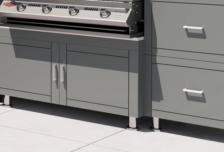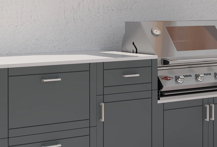 Meraki’s 33″ BBQ kitchen cabinet series is a made of boilo board. It is the most strongest and durable option for your outdoor kitchen set-up. It is resistant to termites, heat, fire, cold/hot weather, and boiling water resistant board. It is the most reliable choice for your kitchen storage needs.