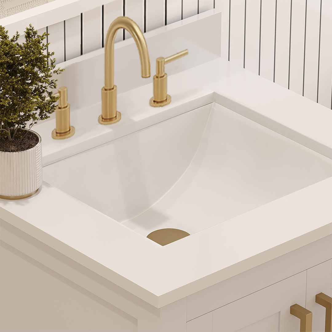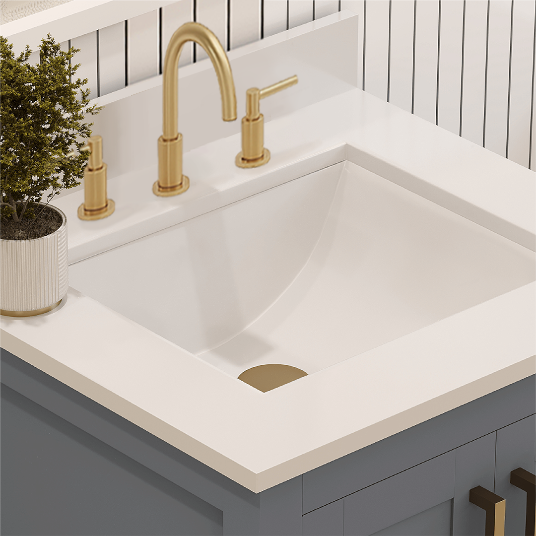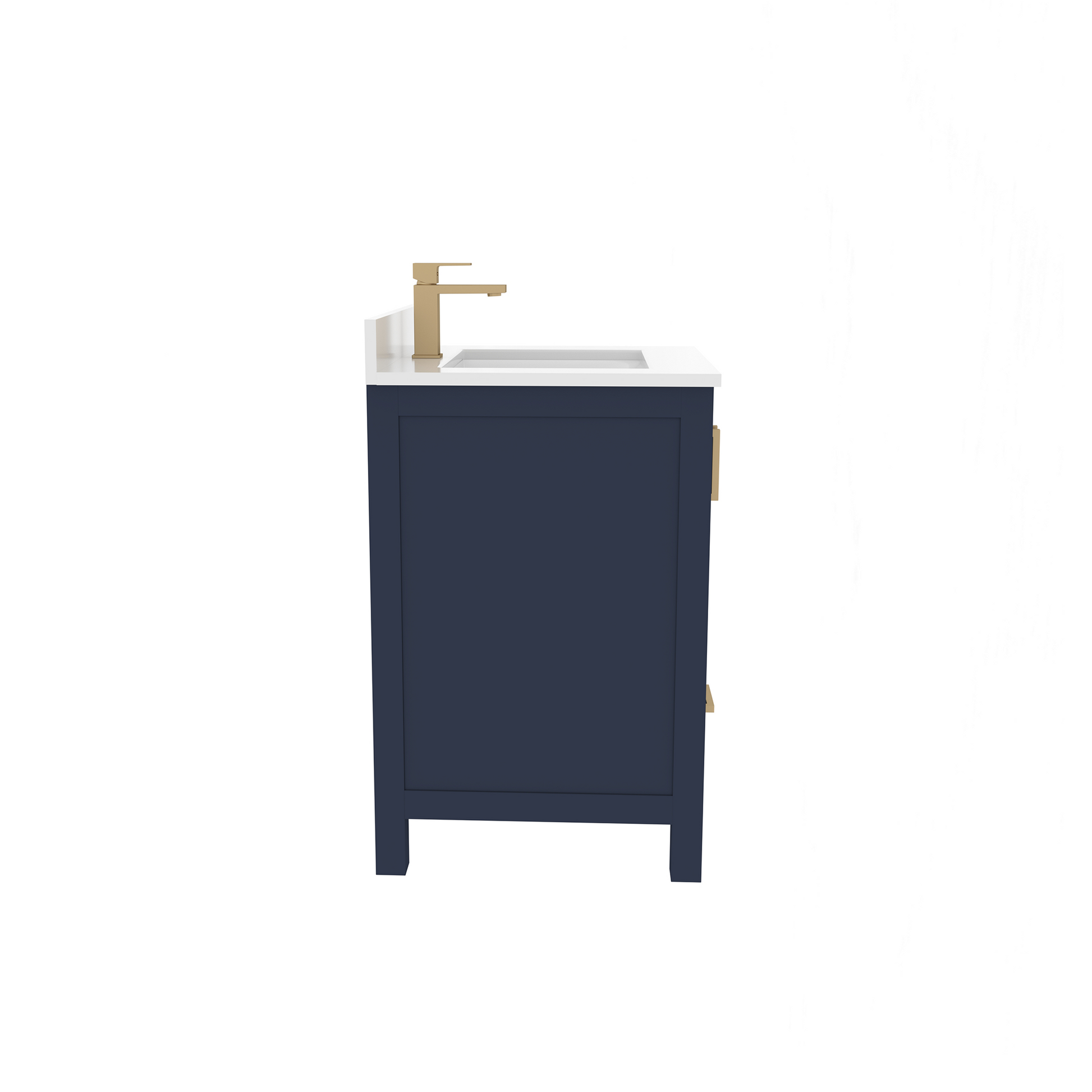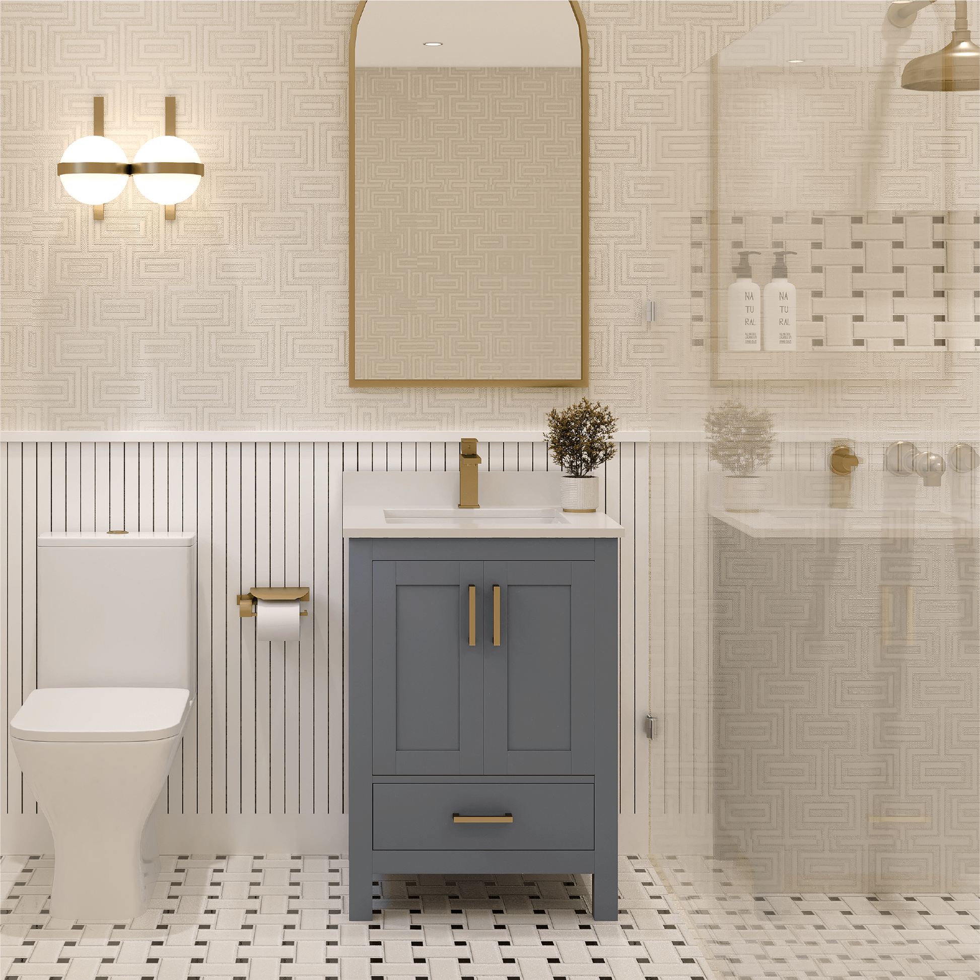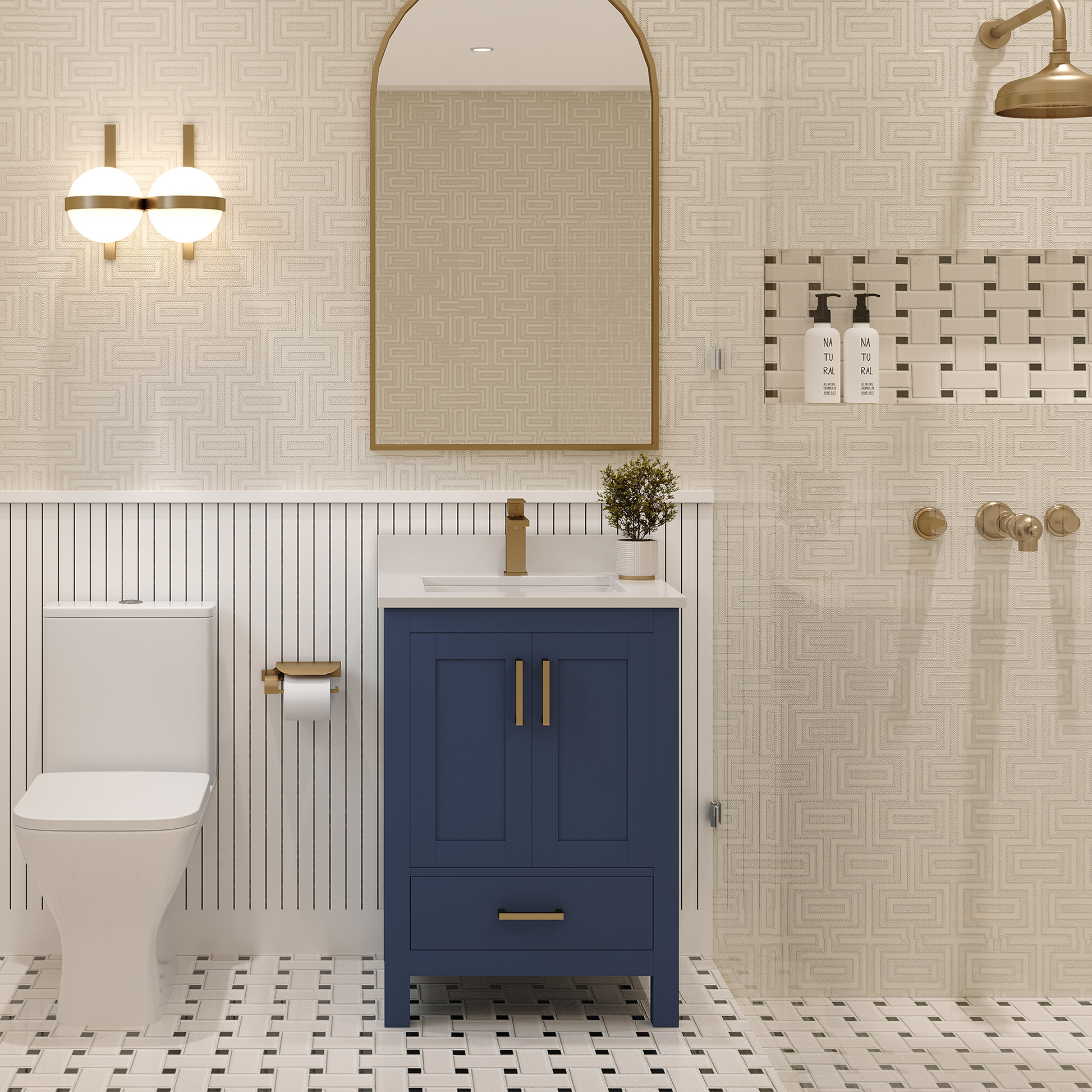Rooh 24 Inch Solid Wood Bathroom Vanity with Undermount single Rectangle sink & White Quartz countertop 0.75 inch edge in white
