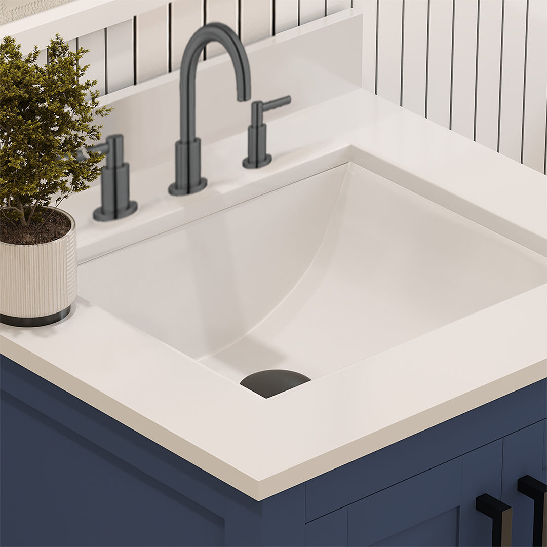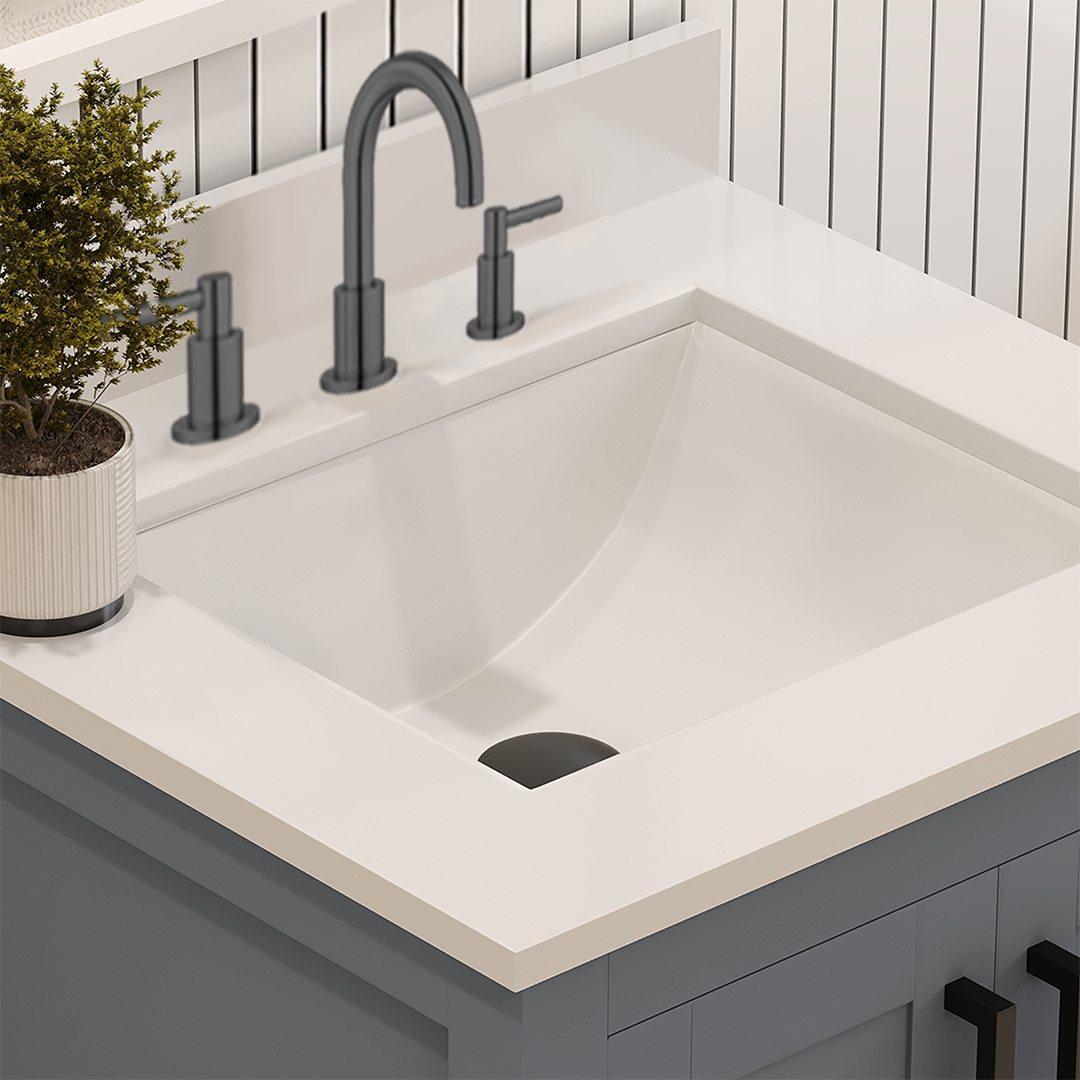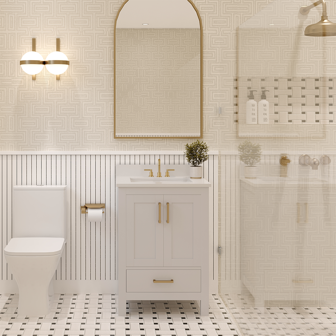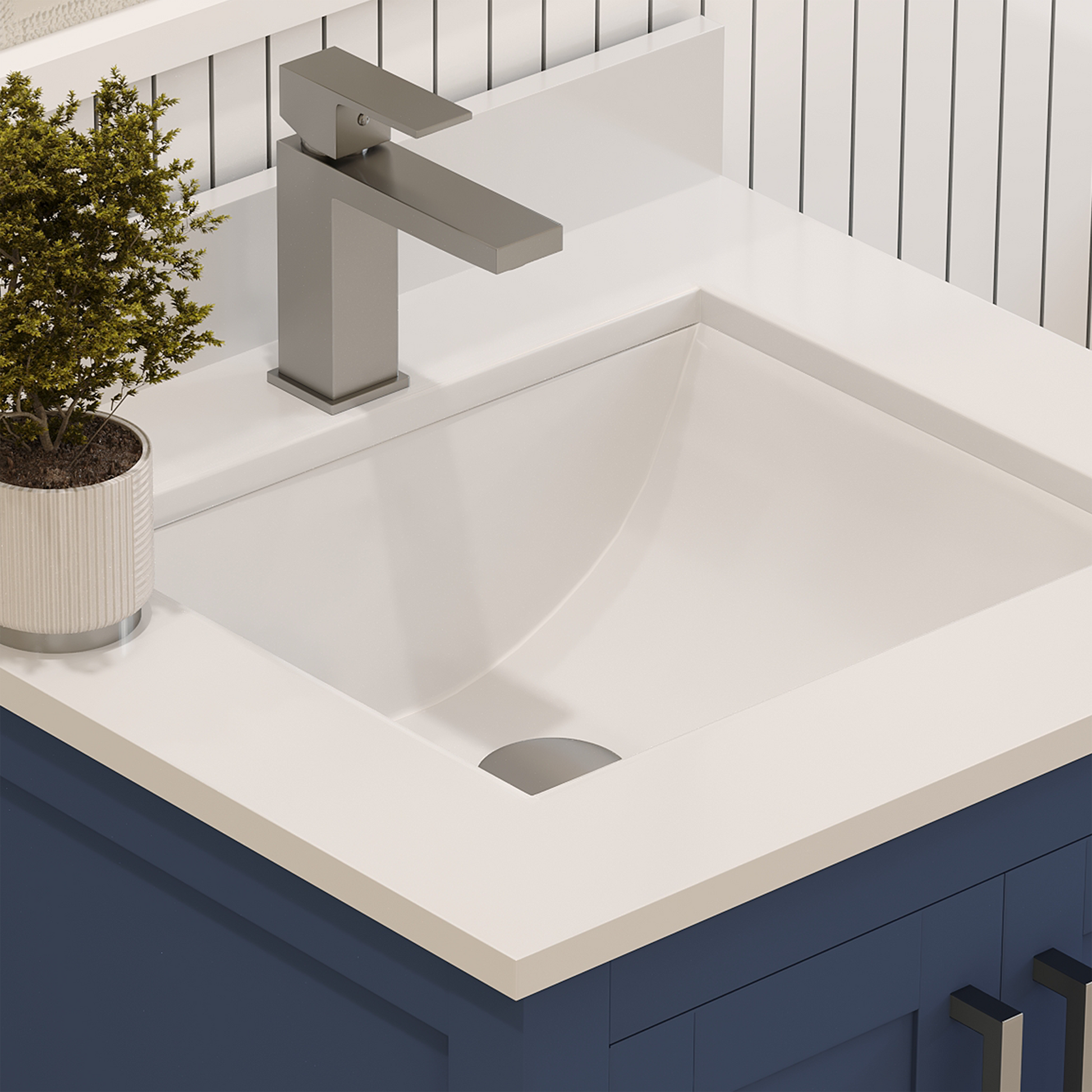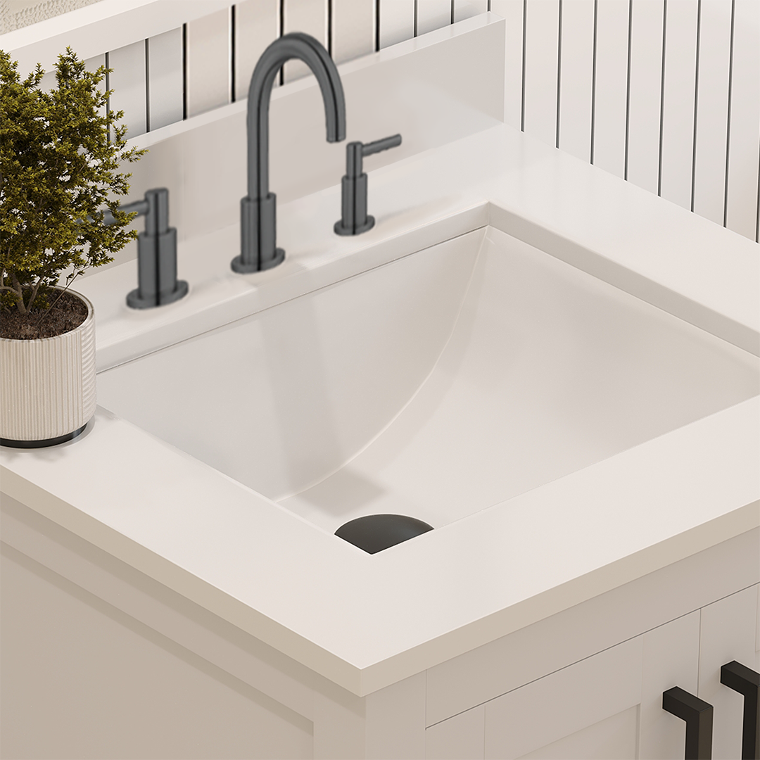 Rooh 24 Inch Solid Wood Bathroom Vanity with Undermount single Rectangle sink & White Quartz countertop 0.75 inch edge in white