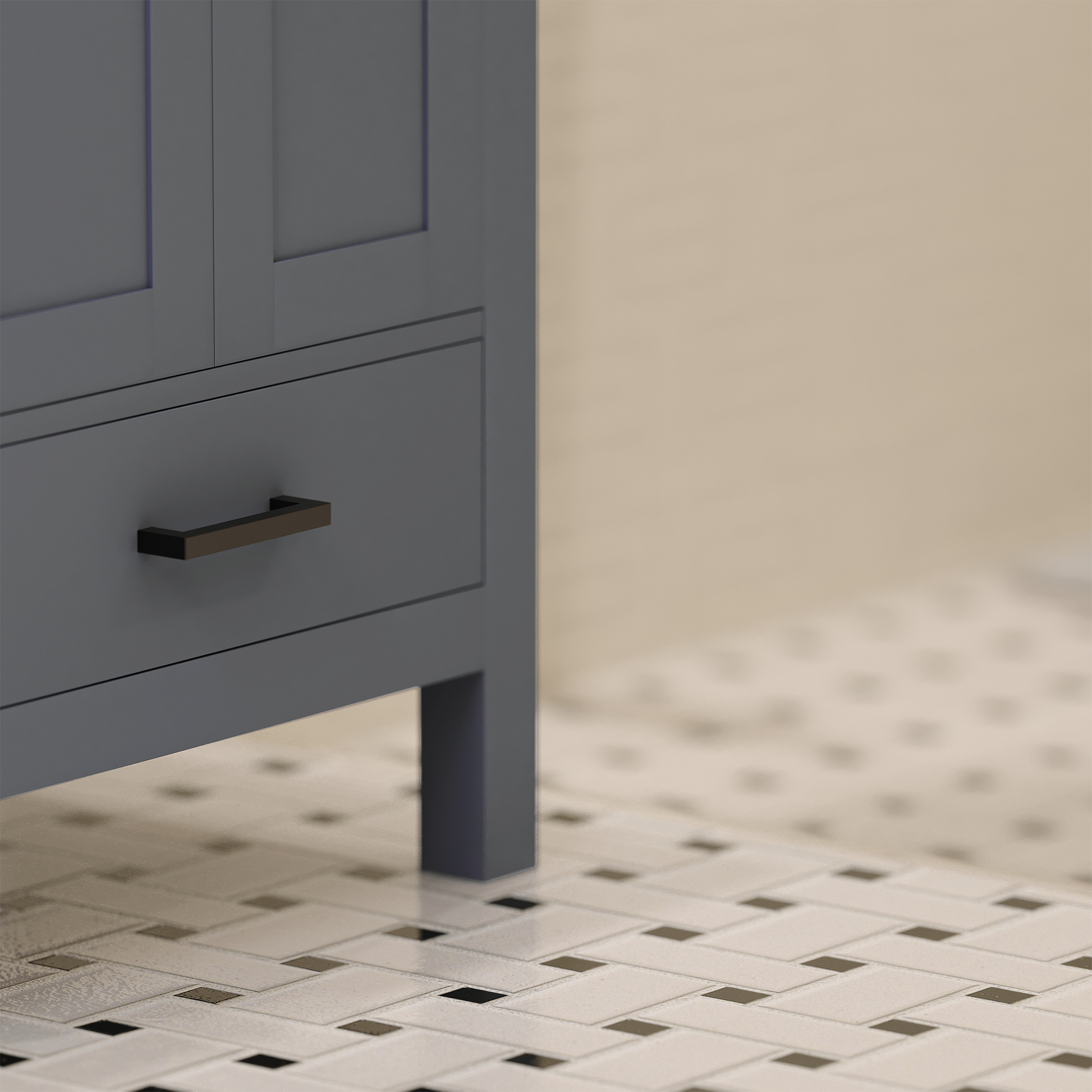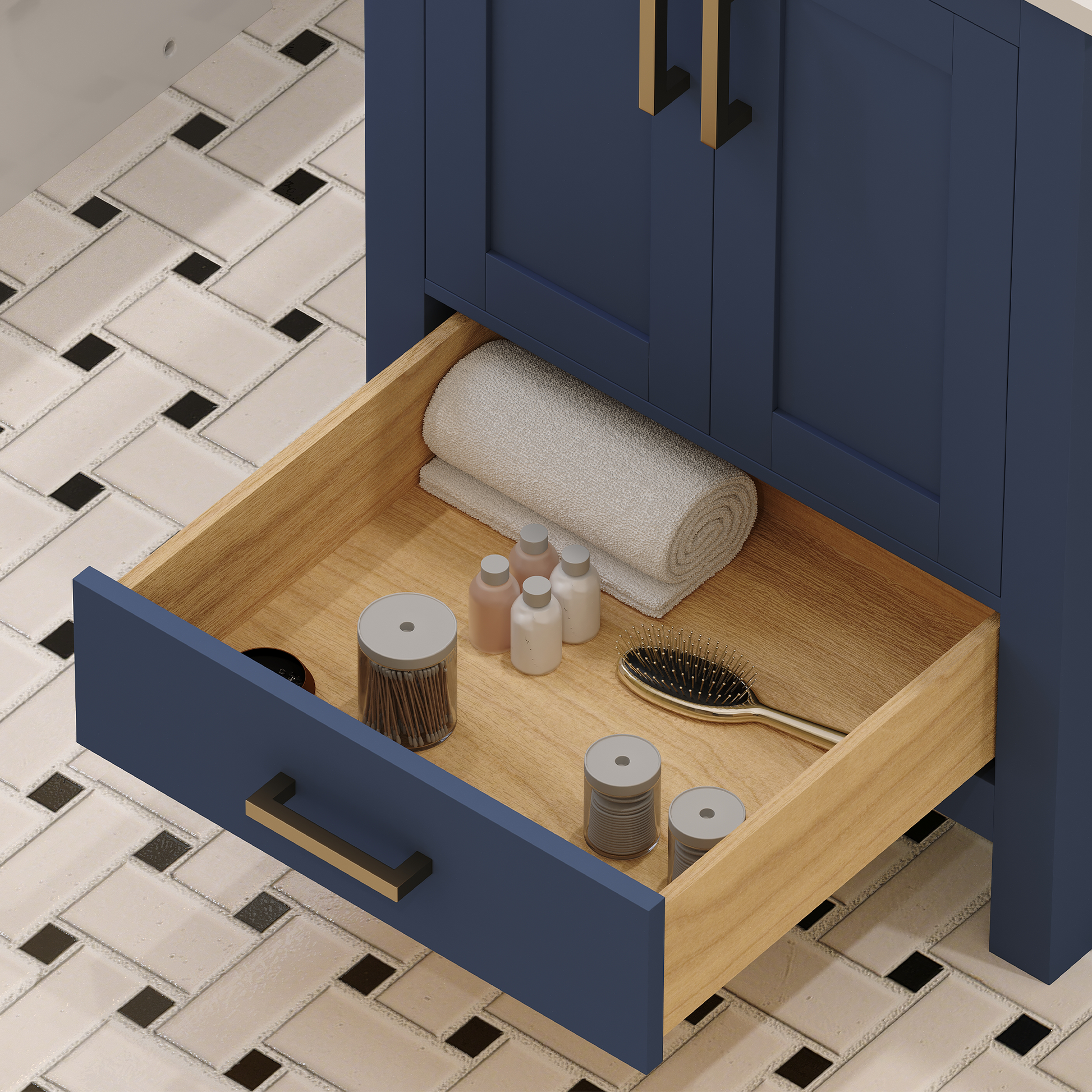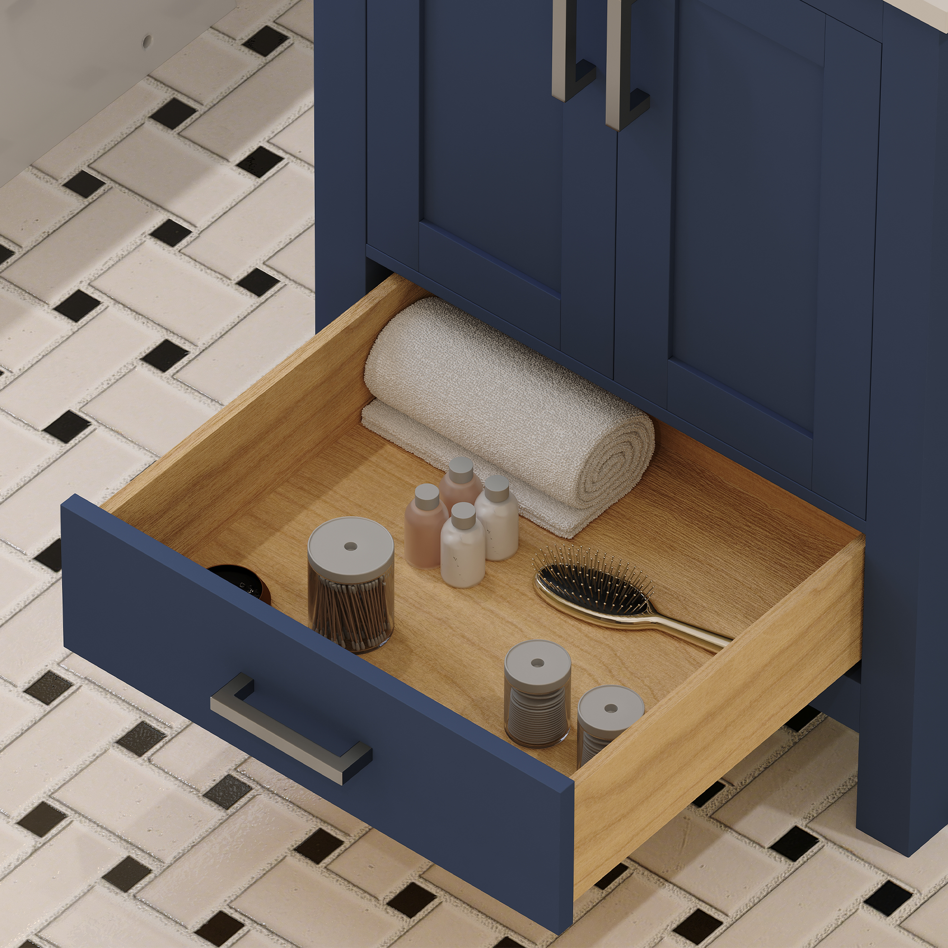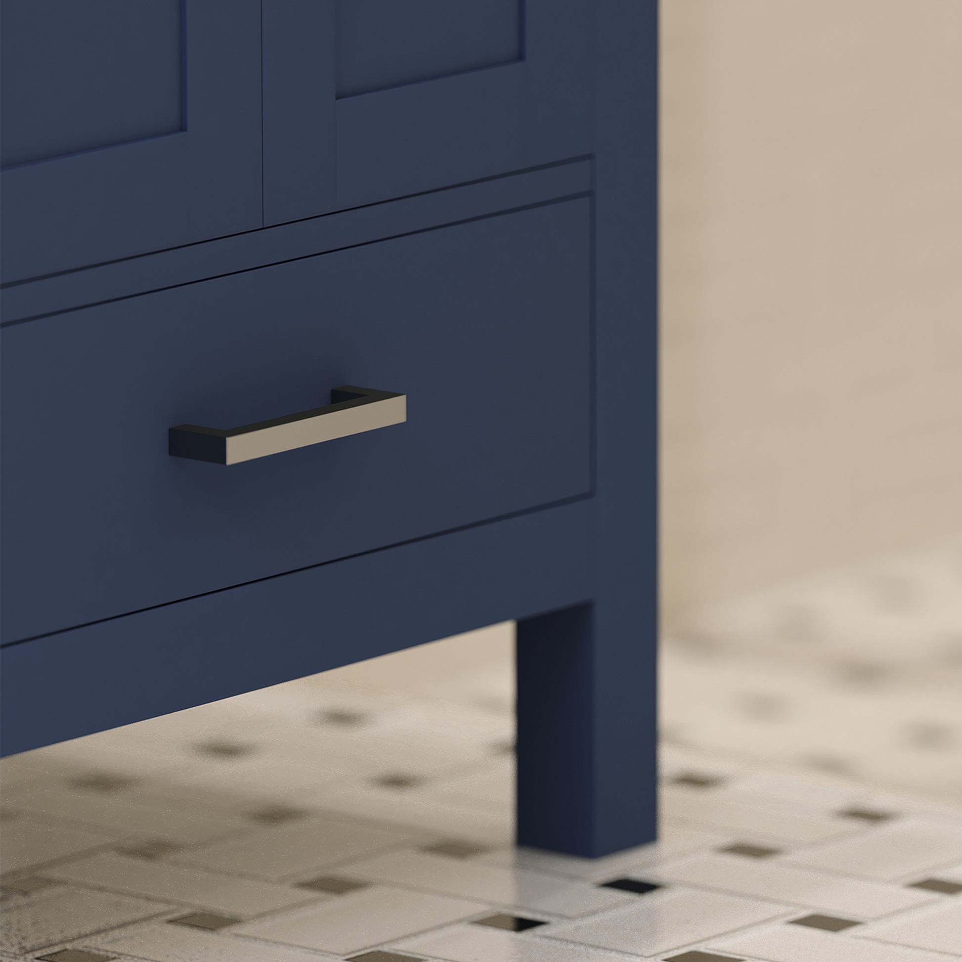 Features & Functionality: This bathroom vanity has a standard but highly convenient design, designed for modern American homes. Complete with smart-closing hinges and high density, sound resistant drawers. The large drawers fit all the modern toiletries, such as electric toothbrushes, skincare organizers, hair styling tools, luxurious bath products, etc. Its straight legs include adjustable levelers, which make accurate height adjustment on an uneven floor possible. This further stabilizes the vanity, prevents wobbling, and contributes to its durability, making it a stylish and practical addition to every contemporary bath space.