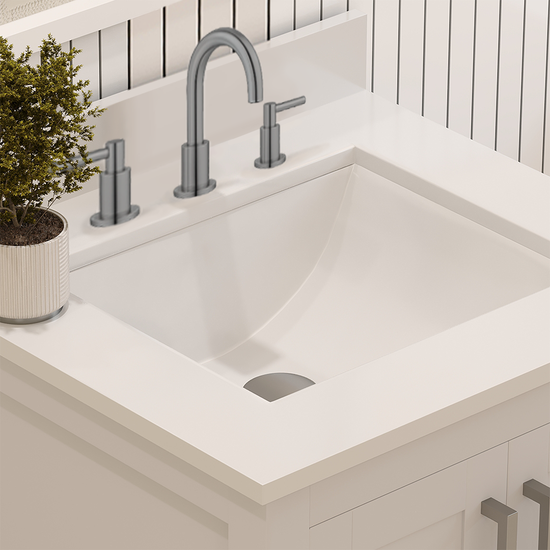 AYNA utilizes quartz countertops for bathroom vanities because of their exceptional durability, non-porous composition, ease of maintenance, resistance to stains, hygienic qualities, and the extensive variety of design choices they offer.