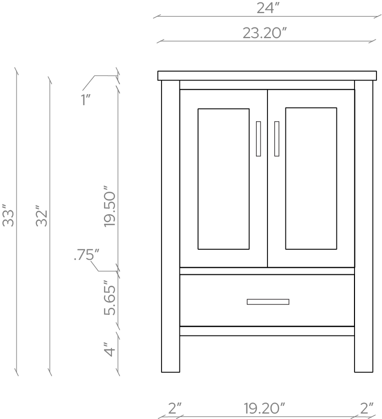 Cabinet Dimensions: 23.25"W x 21.75"H x 32"L