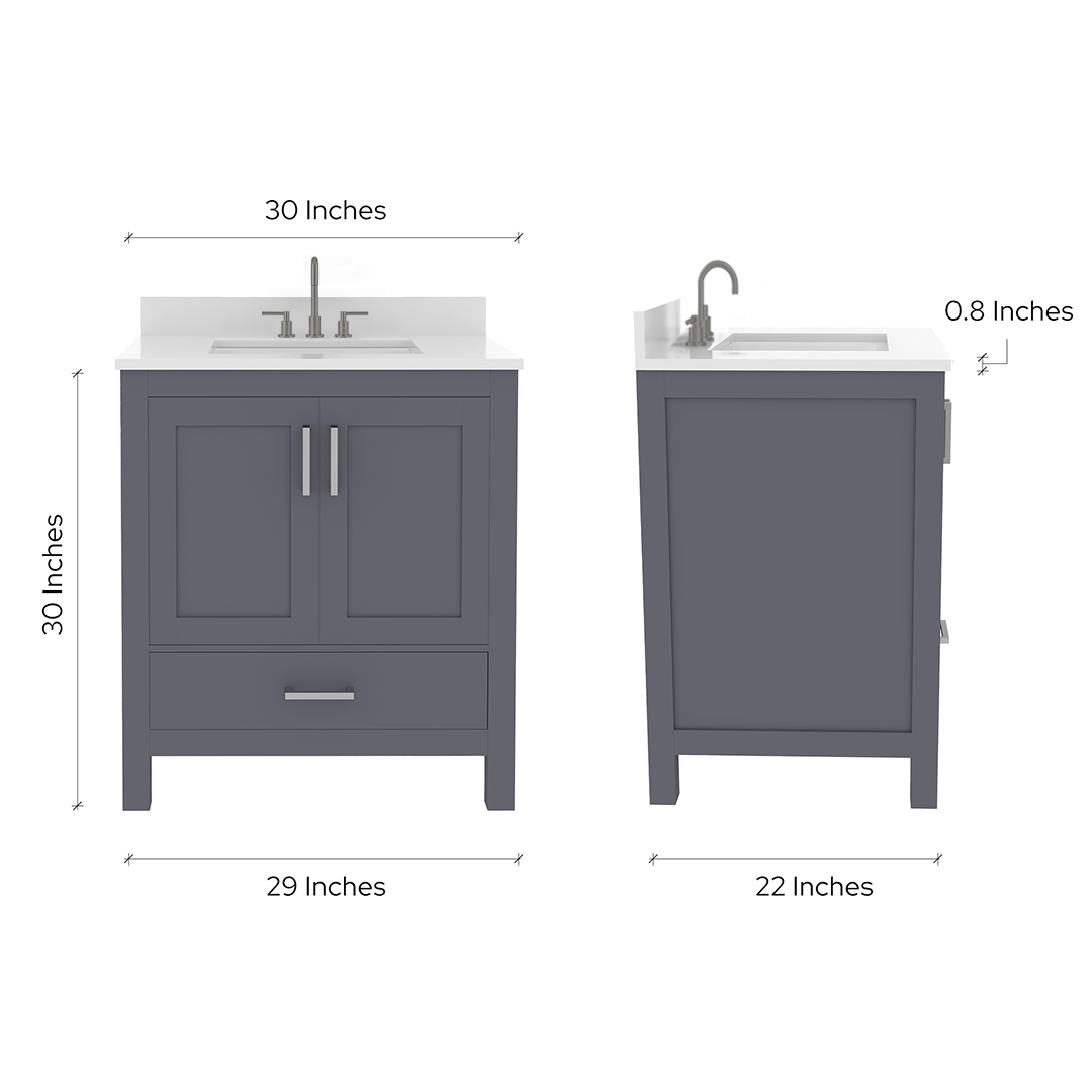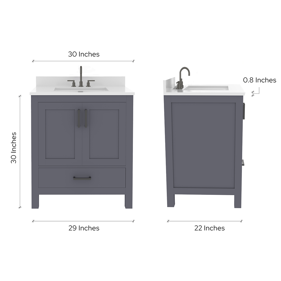 Countertop Dimensions: 30"W x 22"D x 0.75"H