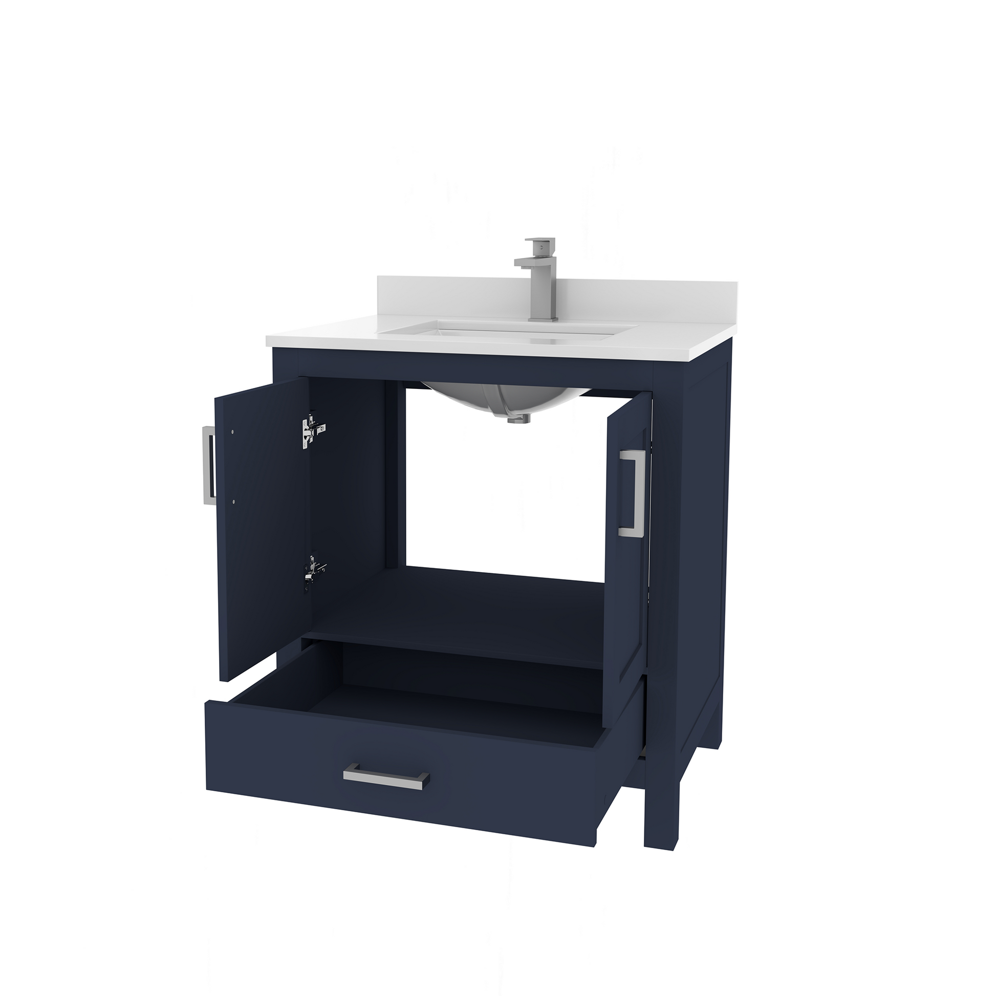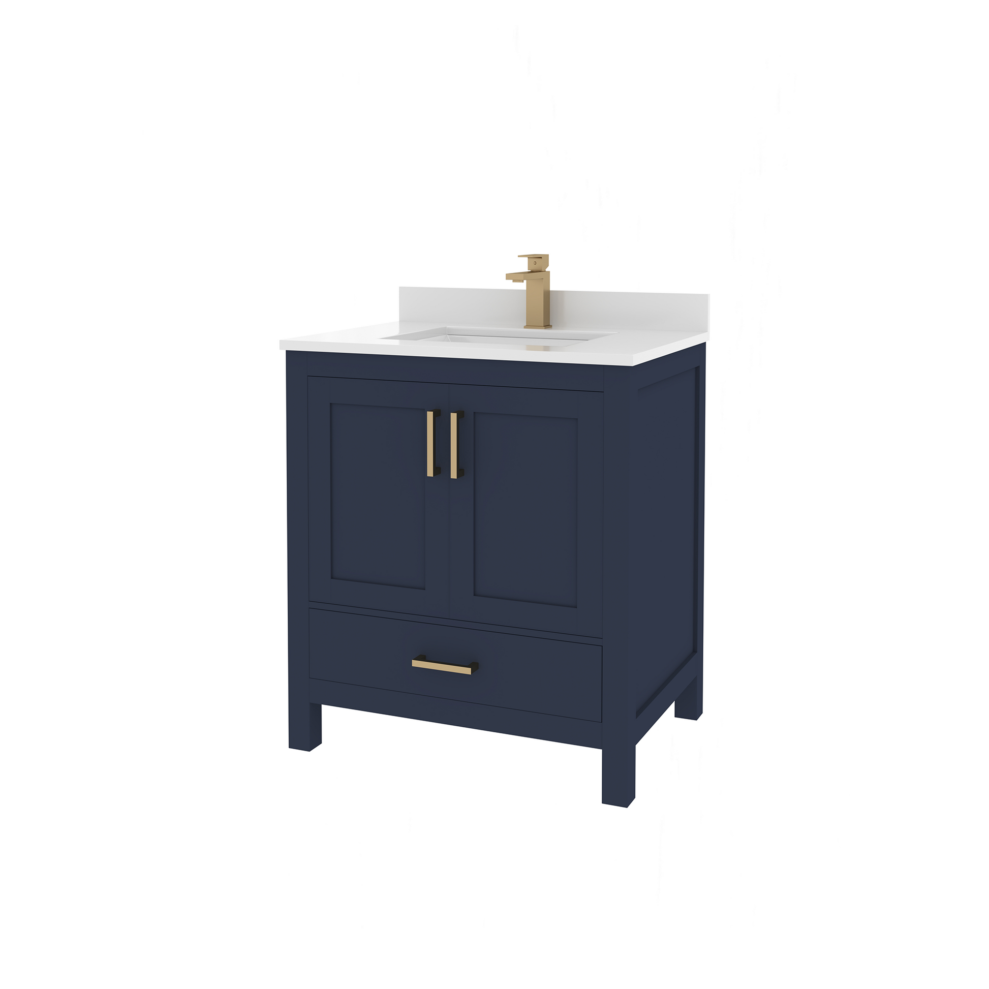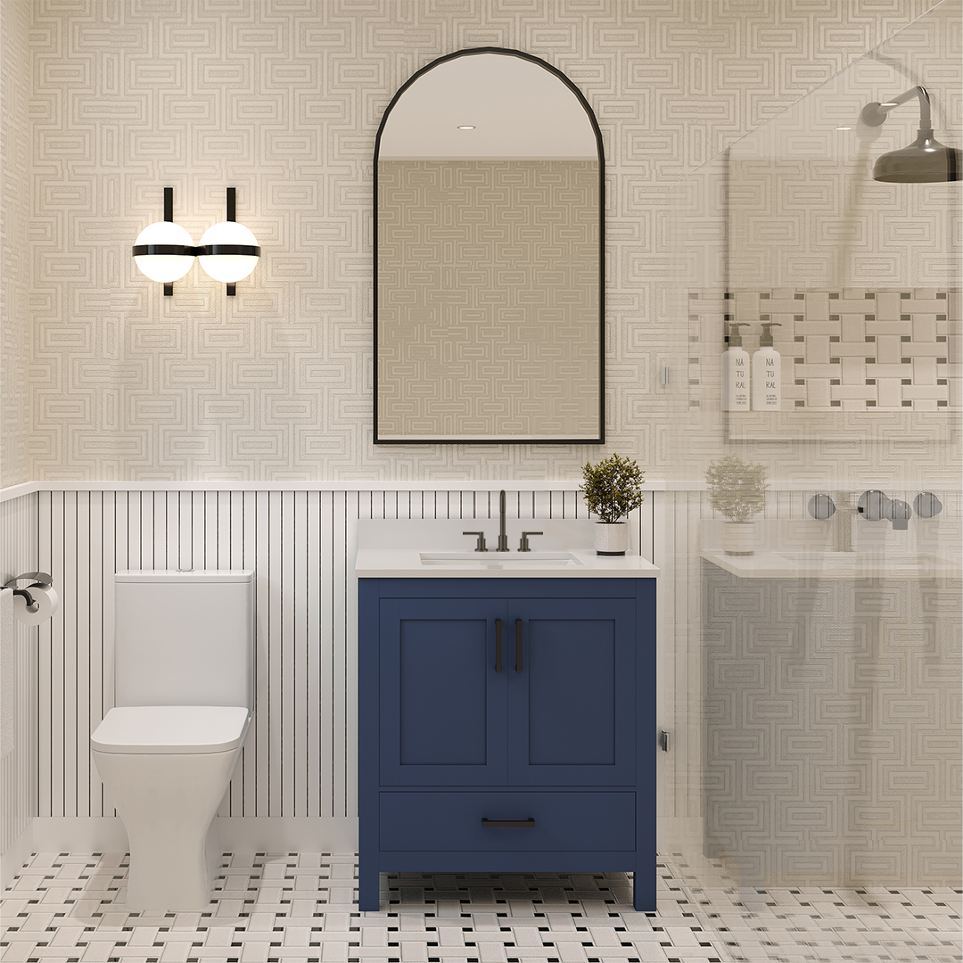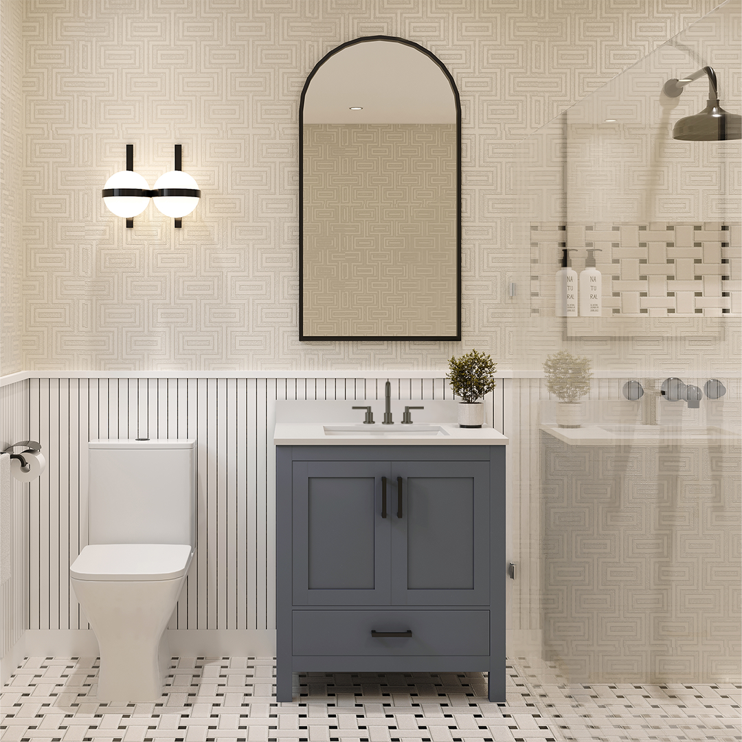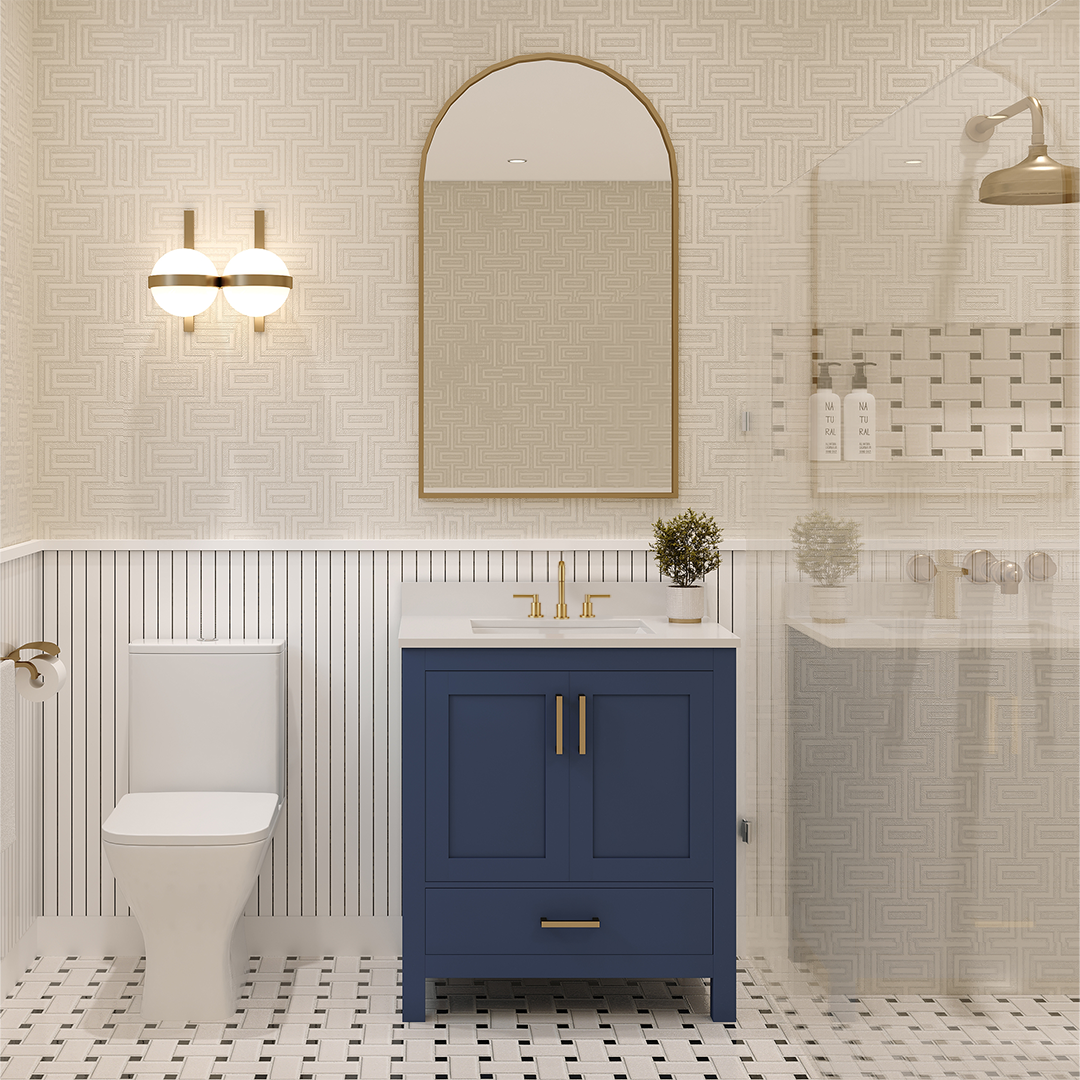 Rooh 30 Inch Solid Wood Bathroom Vanity with Undermount single Rectangle sink & White Quartz countertop 0.75 inch edge in white