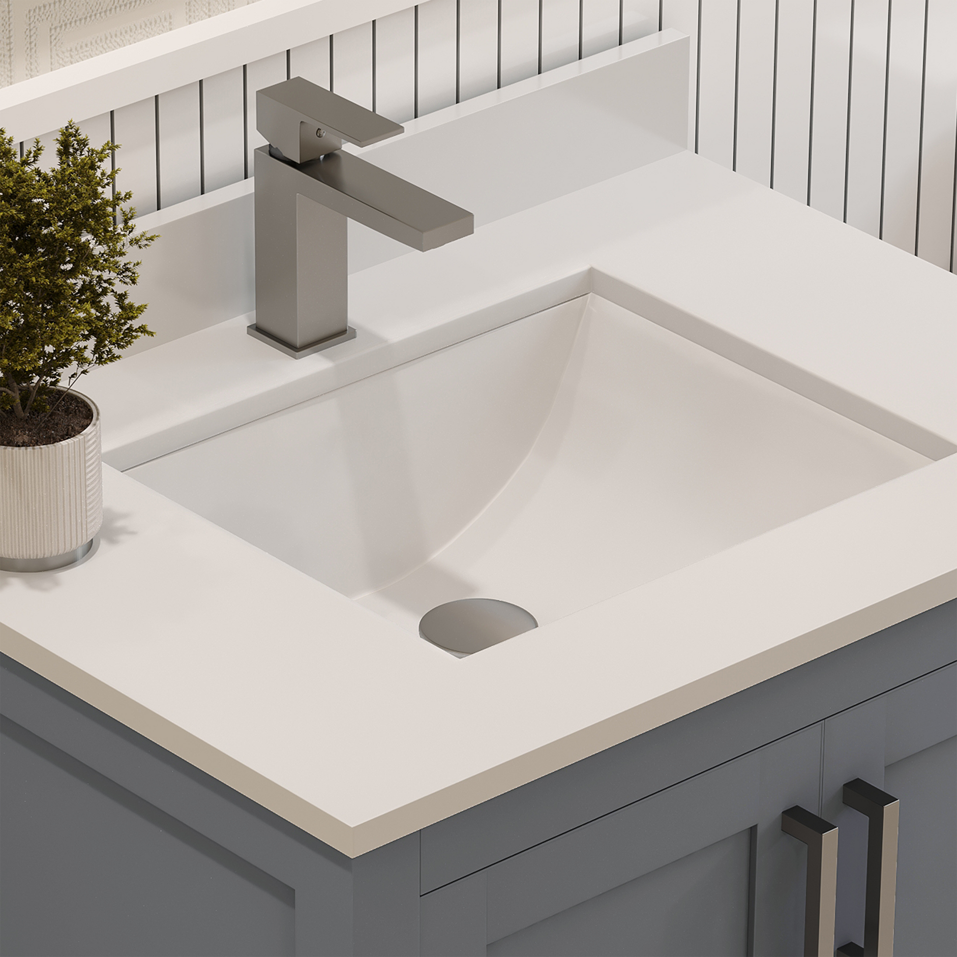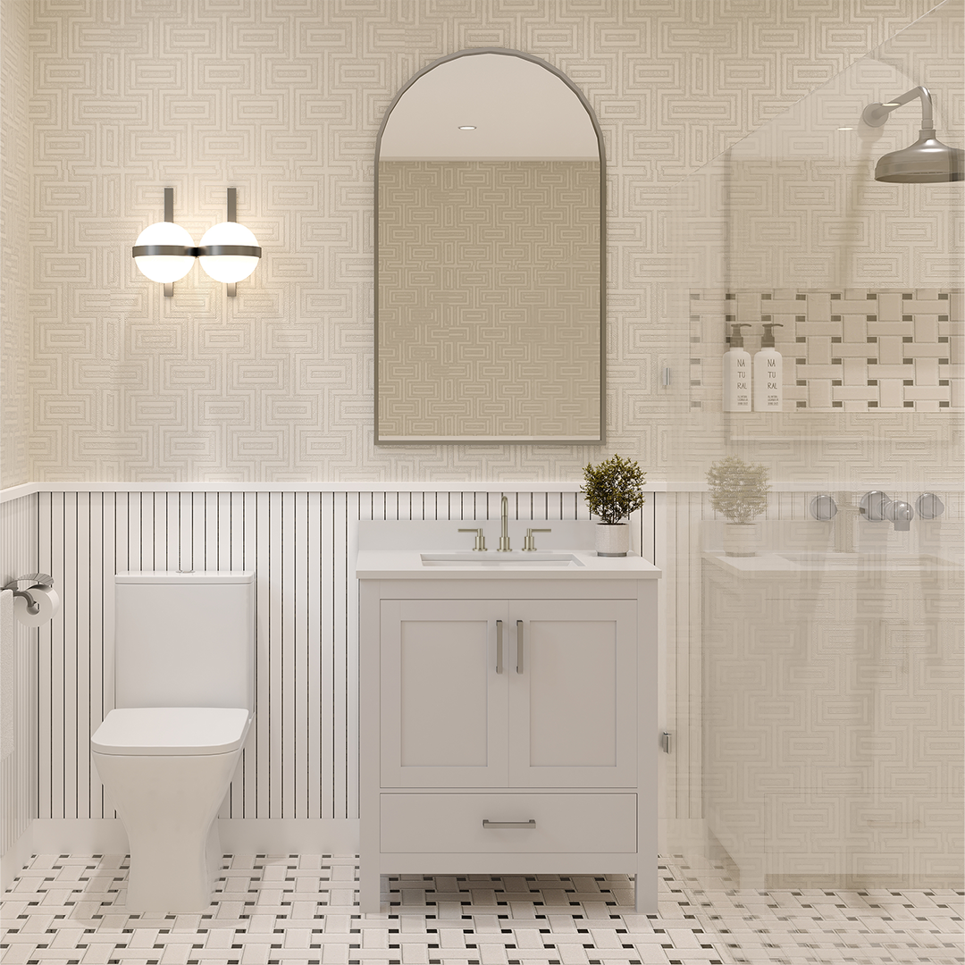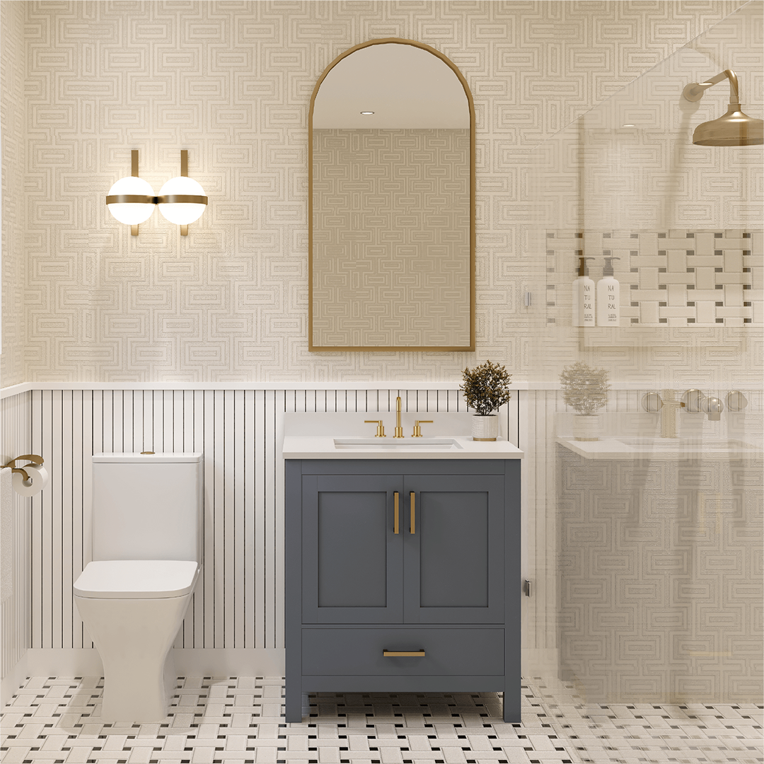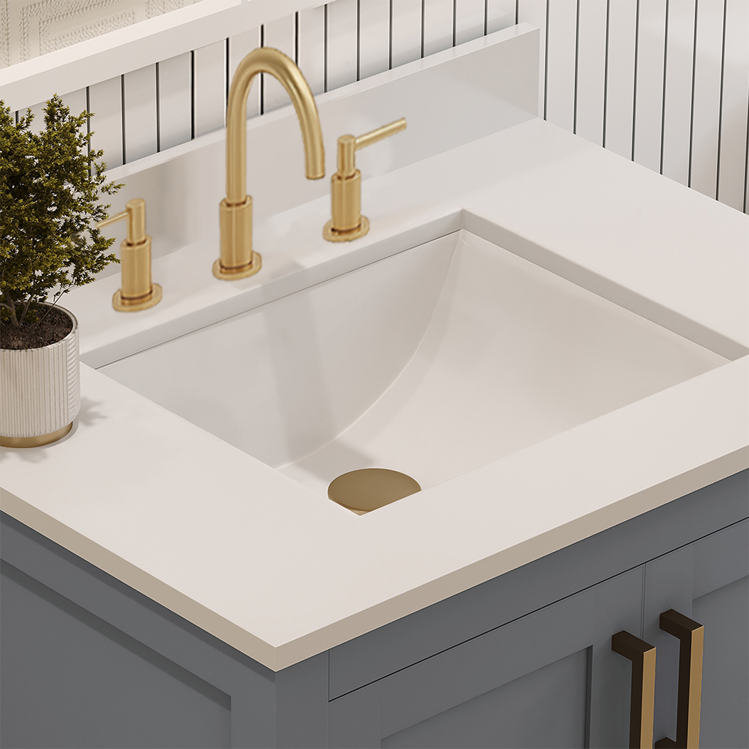 AYNA utilizes quartz countertops for bathroom vanities because of their exceptional durability, non-porous composition, ease of maintenance, resistance to stains, hygienic qualities, and the extensive variety of design choices they offer.