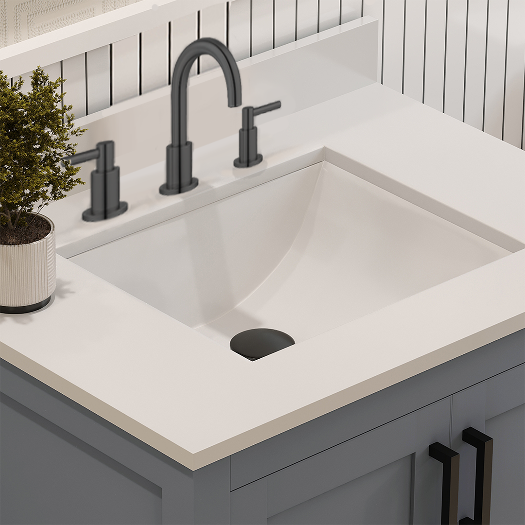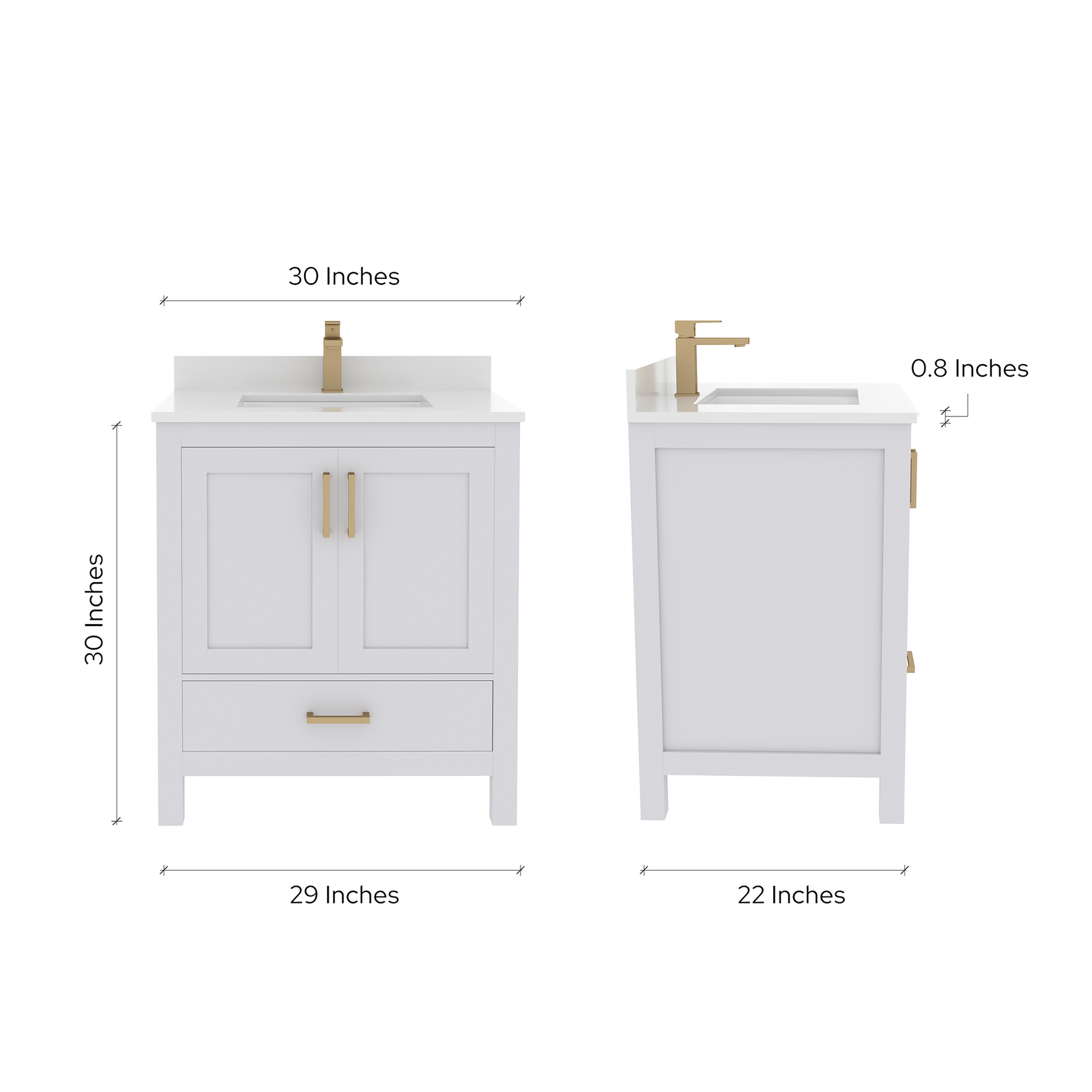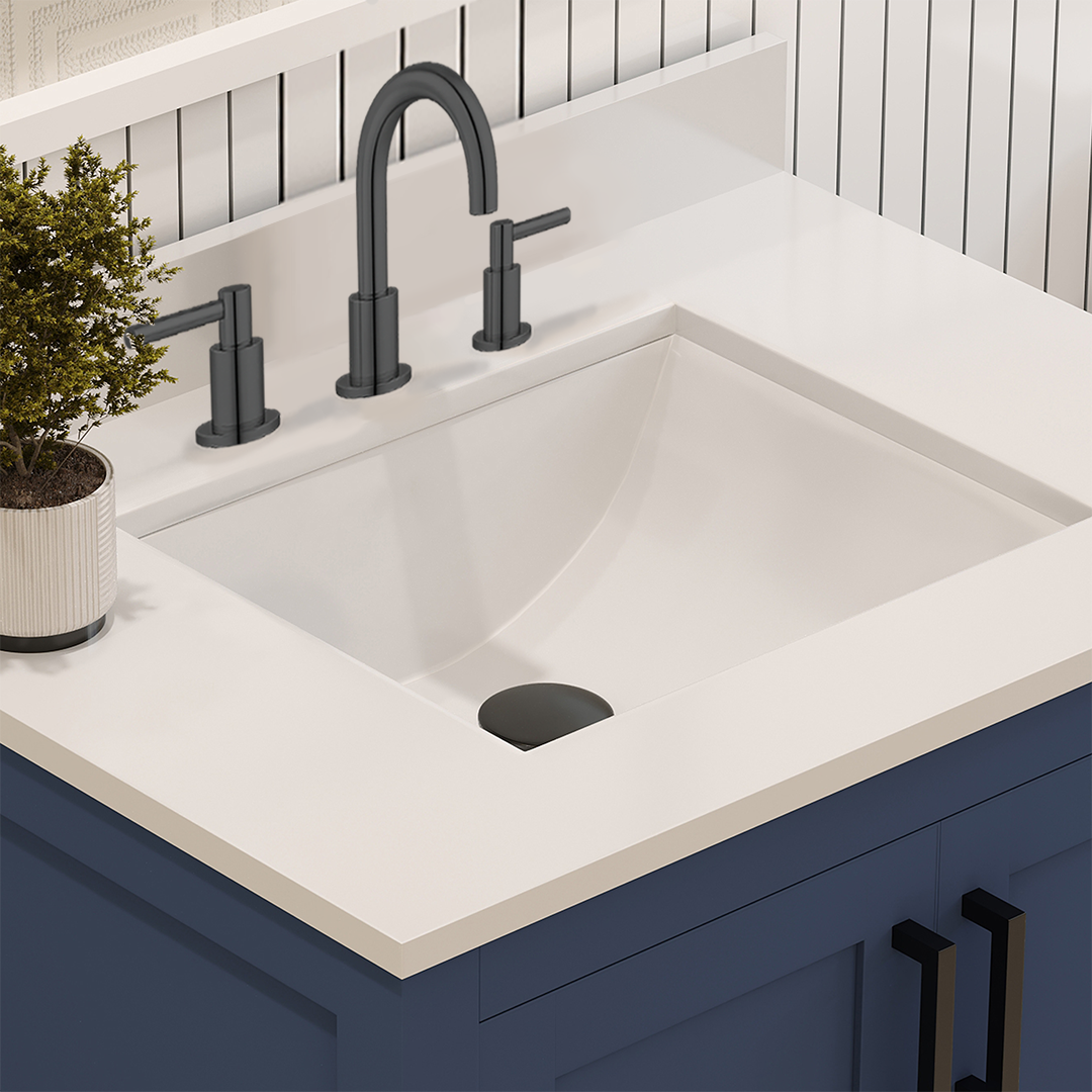 - Comes with a 0.75" thick white quartz countertop edge