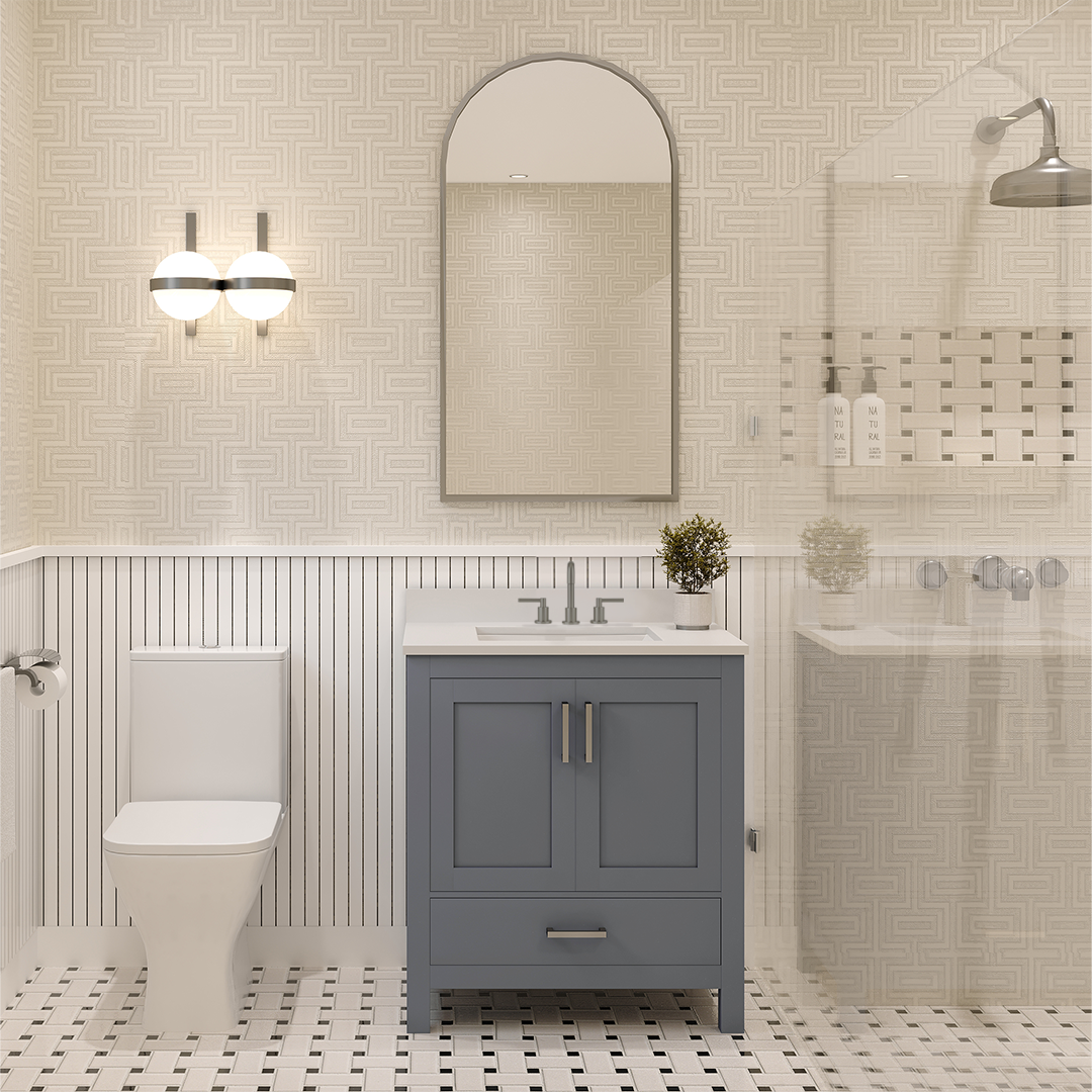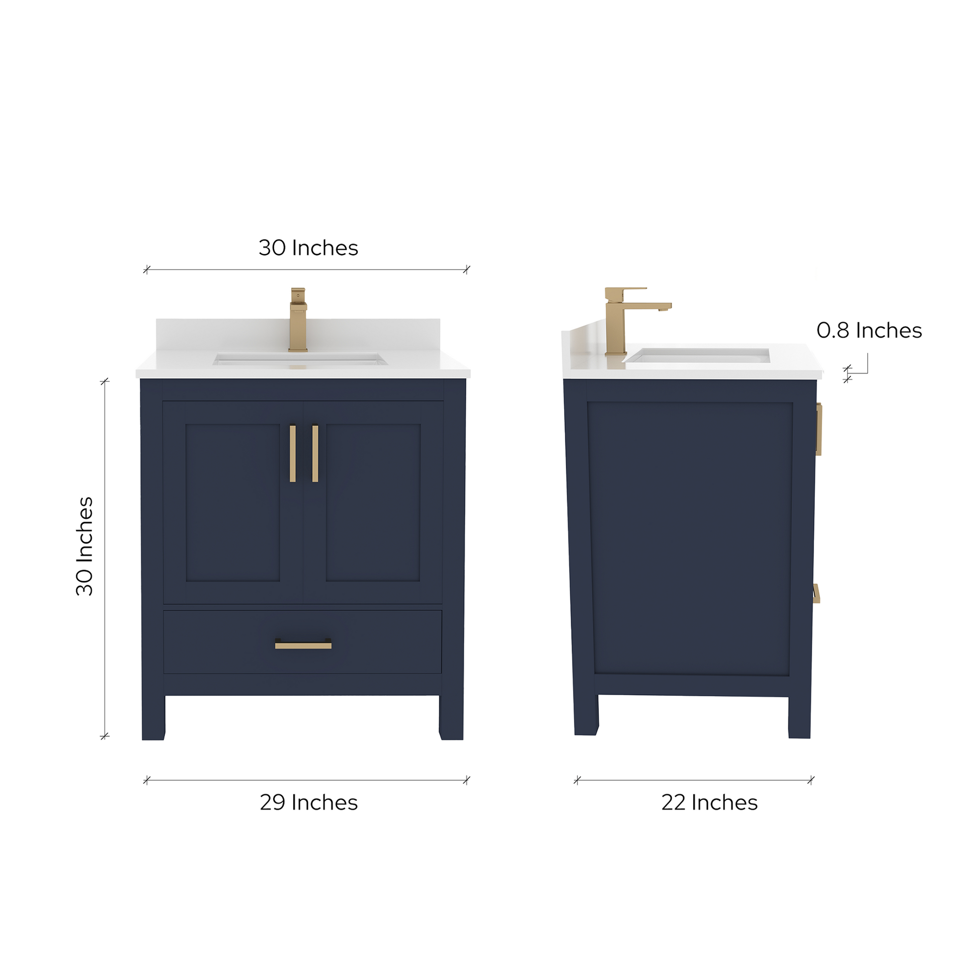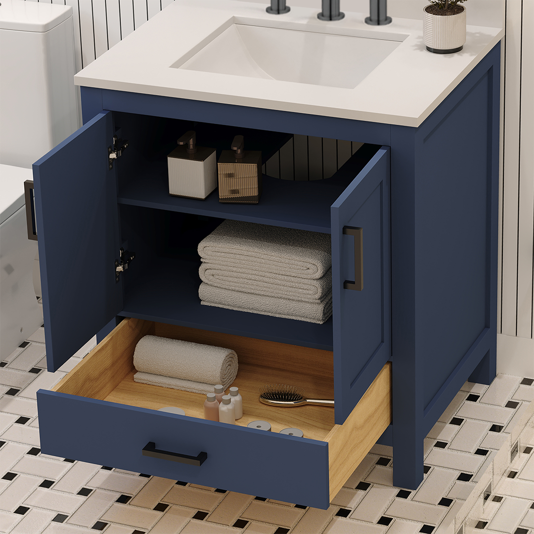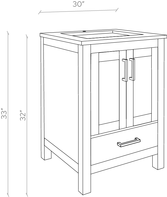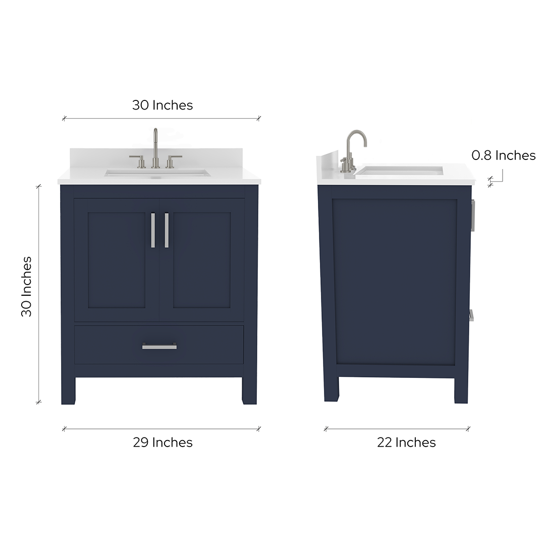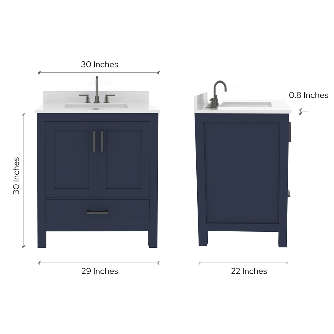 Material & Build: This 30” W x 22” D x 32.75” H wooden bathroom vanity is made of a solid natural wood material frame for strength and long-lasting durability. The HDHMR wood panels are a premium engineered wood that offers superior durability and moisture resistance, making it suitable for long term use in humid conditions. This 30-inch bathroom vanity is hand finished with a 8 stage Sherwin Williams painting process, which guarantees excellent durability, moisture resistance, and long-wear protection.