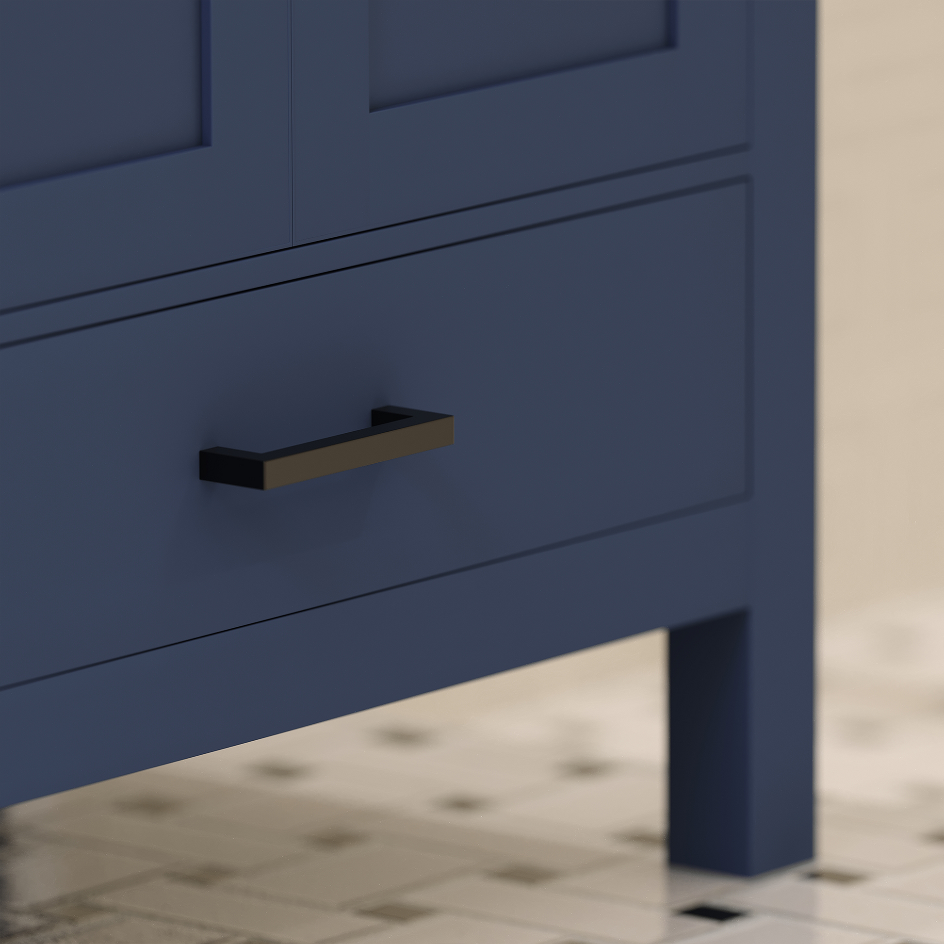 Features & Functionality: This bathroom vanity has a standard but highly convenient design, designed for modern American homes. Complete with smart-closing hinges and high density, sound resistant drawers. The large drawers fit all the modern toiletries, such as electric toothbrushes, skincare organizers, hair styling tools, luxurious bath products, etc. Its straight legs include adjustable levelers, which make accurate height adjustment on an uneven floor possible. This further stabilizes the vanity, prevents wobbling, and contributes to its durability, making it a stylish and practical addition to every contemporary bath space.