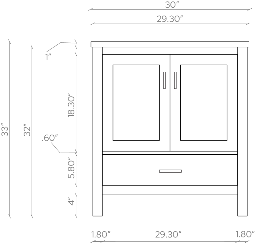 Cabinet Dimensions: 29.25"W x 21.75"D x 32"H