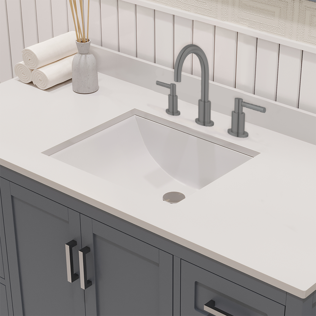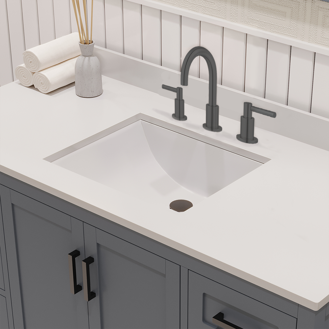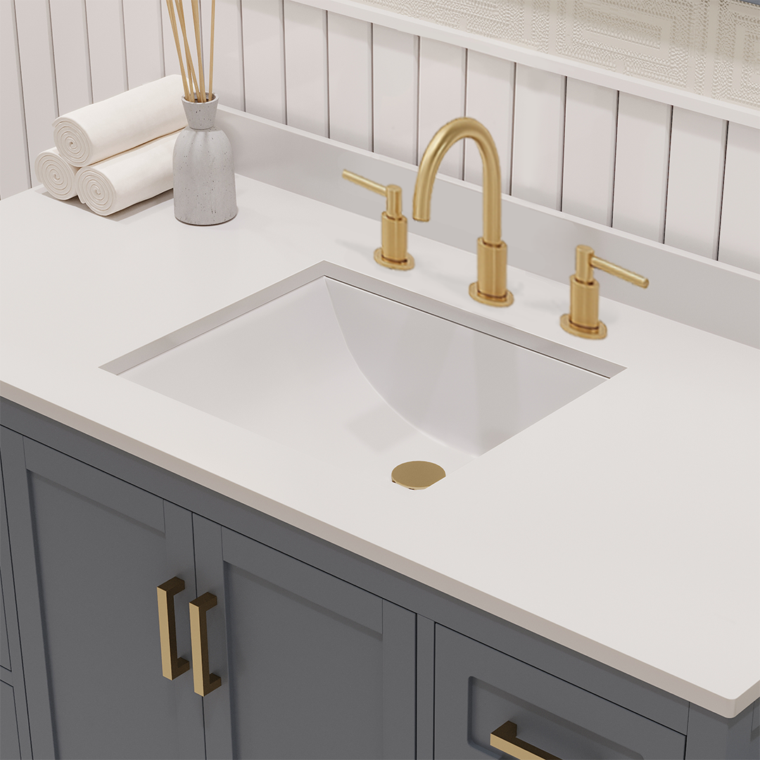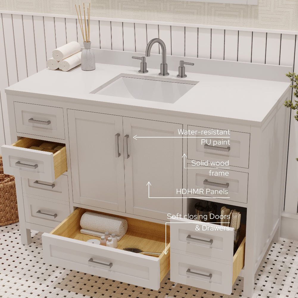 Rooh 48 Inch Solid Wood Bathroom Vanity with Undermount single Rectangle sink & White Quartz countertop 0.75 inch edge in white
