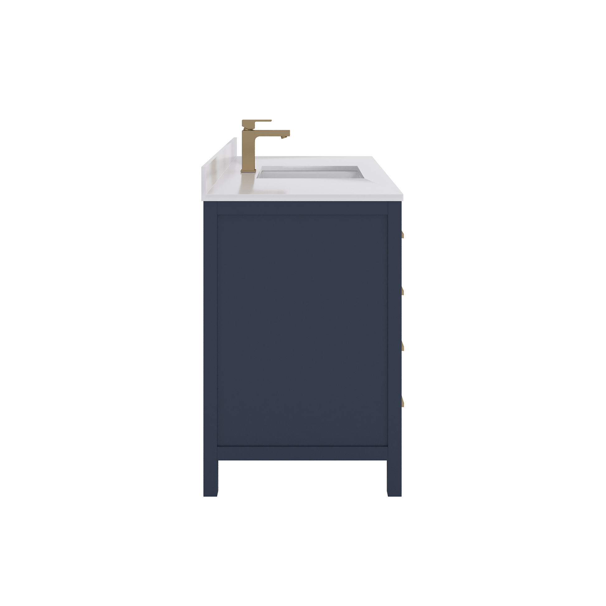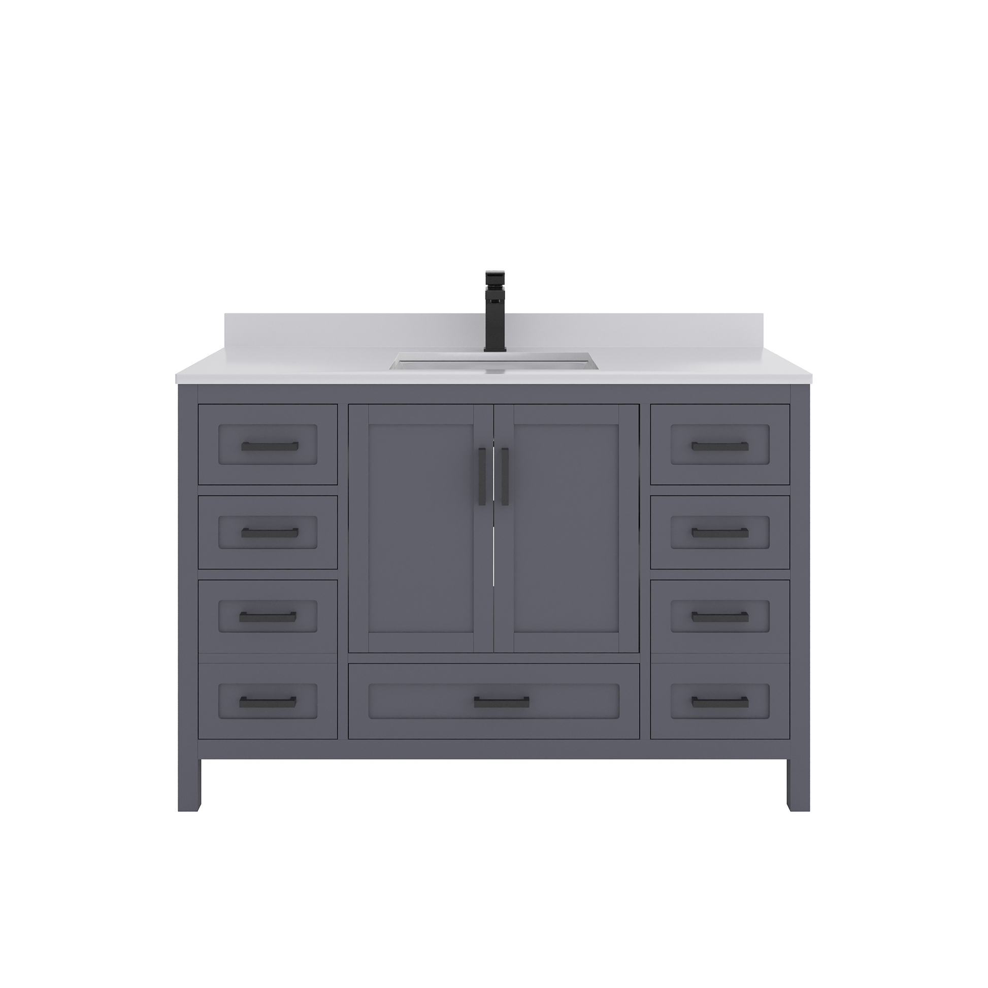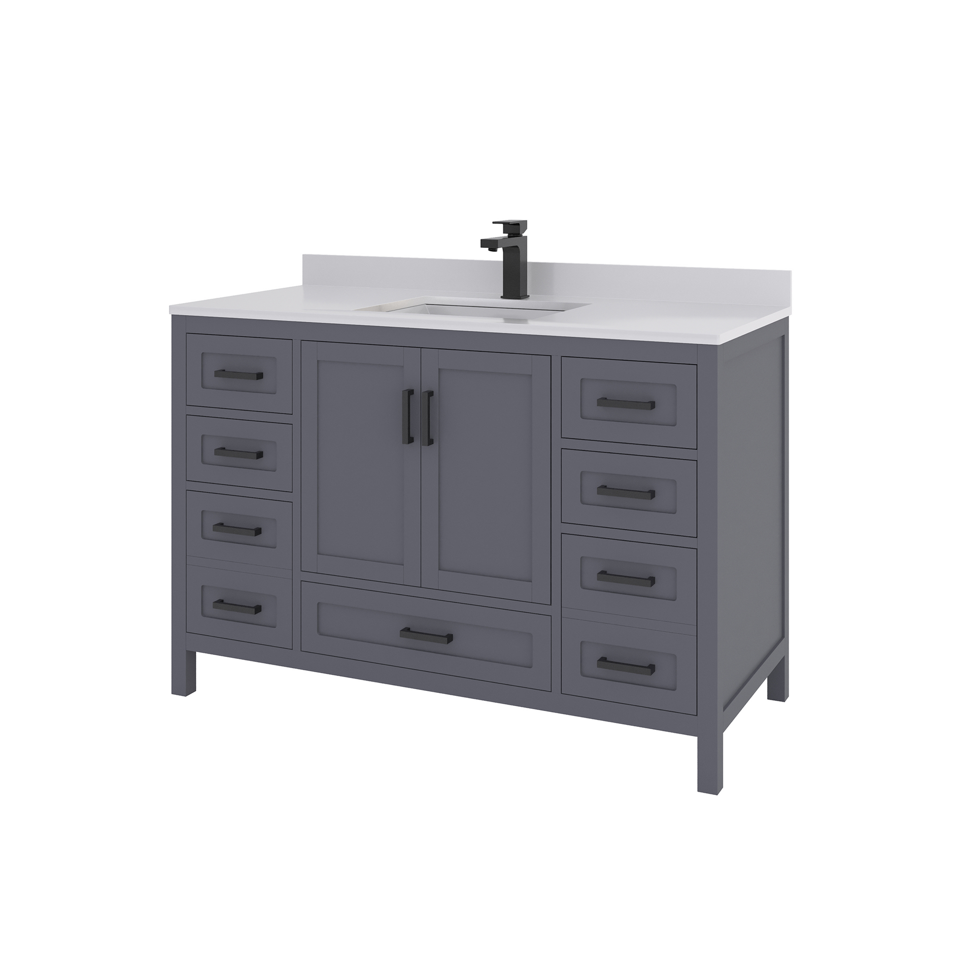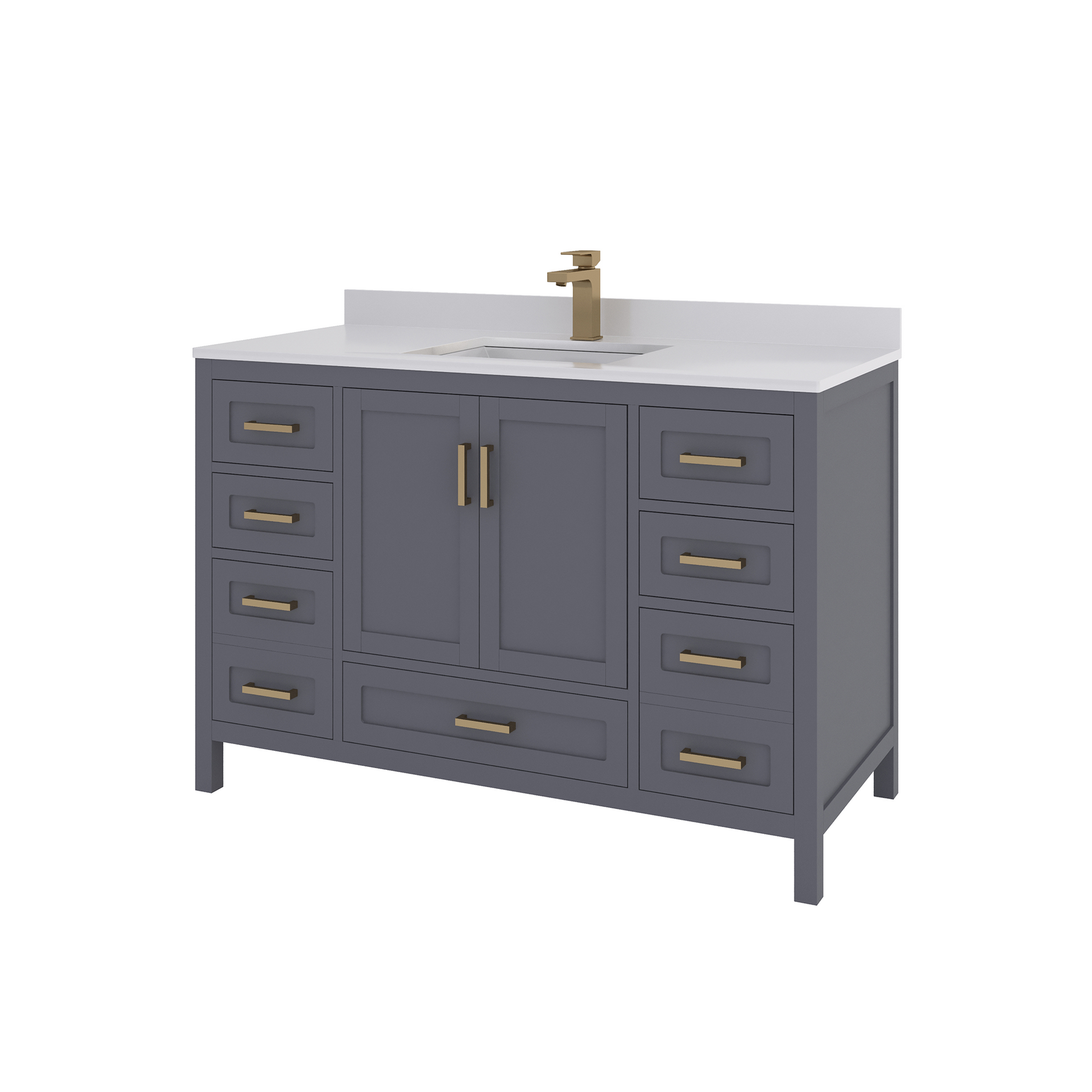 Features & Functionality: This bathroom vanity has a standard but highly convenient design, designed for modern American homes. Complete with smart-closing hinges and high density, sound resistant drawers. The large drawers fit all the modern toiletries, such as electric toothbrushes, skincare organizers, hair styling tools, luxurious bath products, etc. Its straight legs include adjustable levelers, which make accurate height adjustment on an uneven floor possible. This further stabilizes the vanity, prevents wobbling, and contributes to its durability, making it a stylish and practical addition to every contemporary bath space.