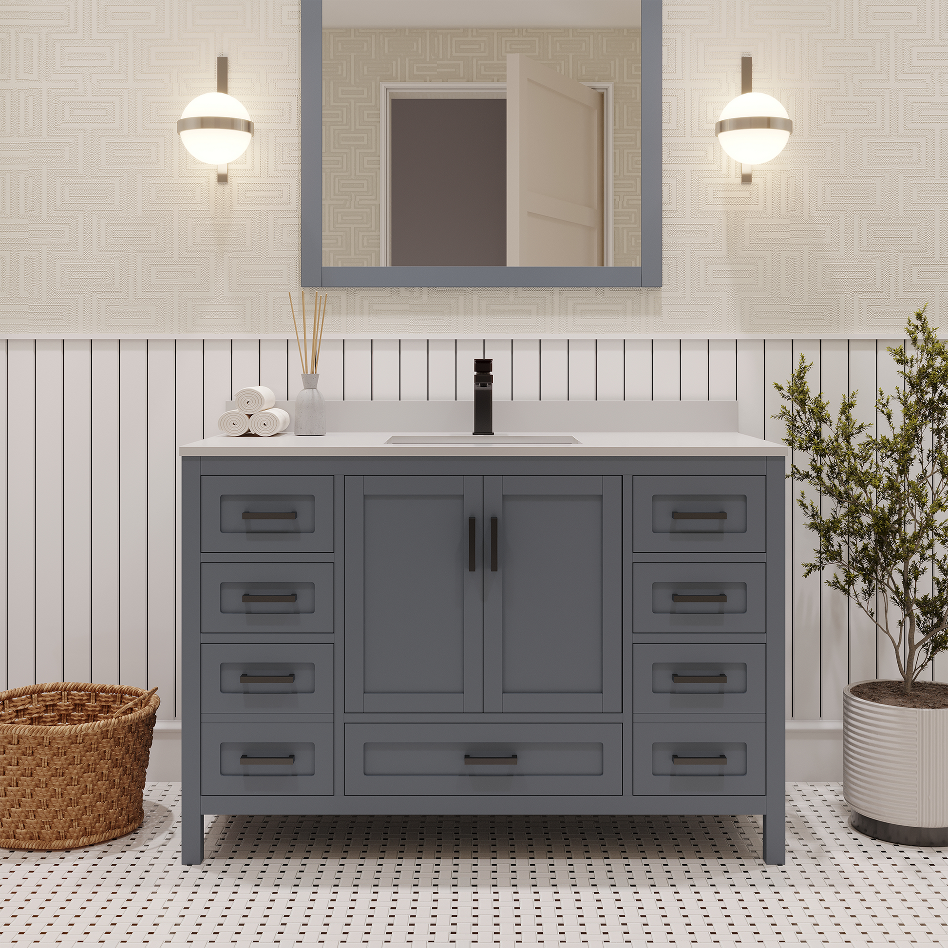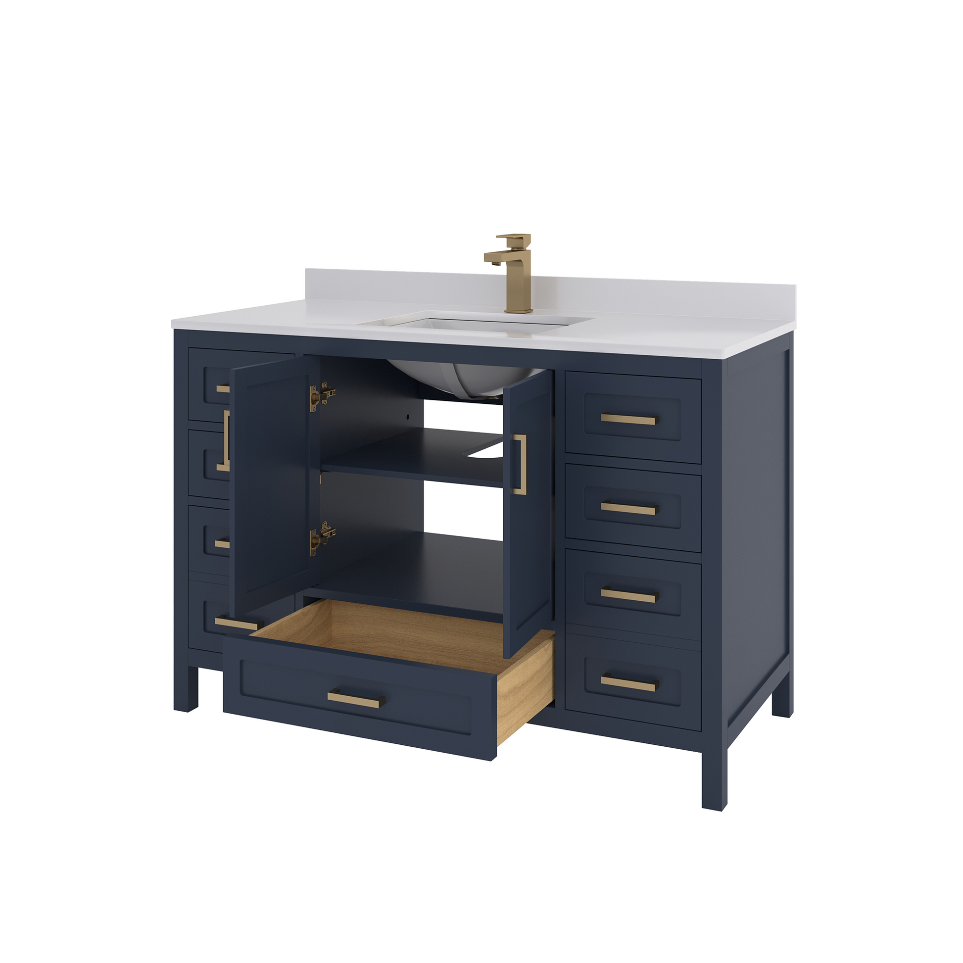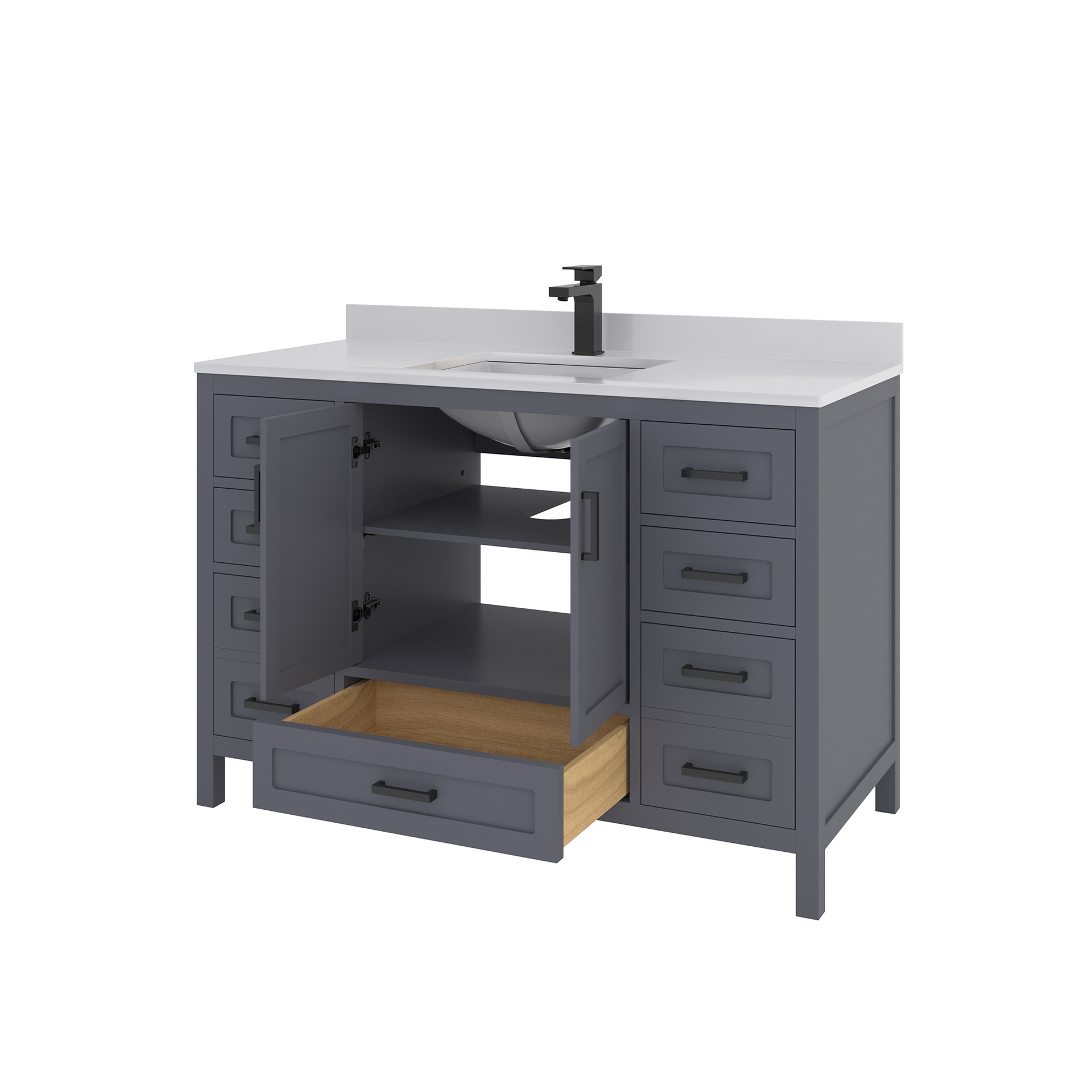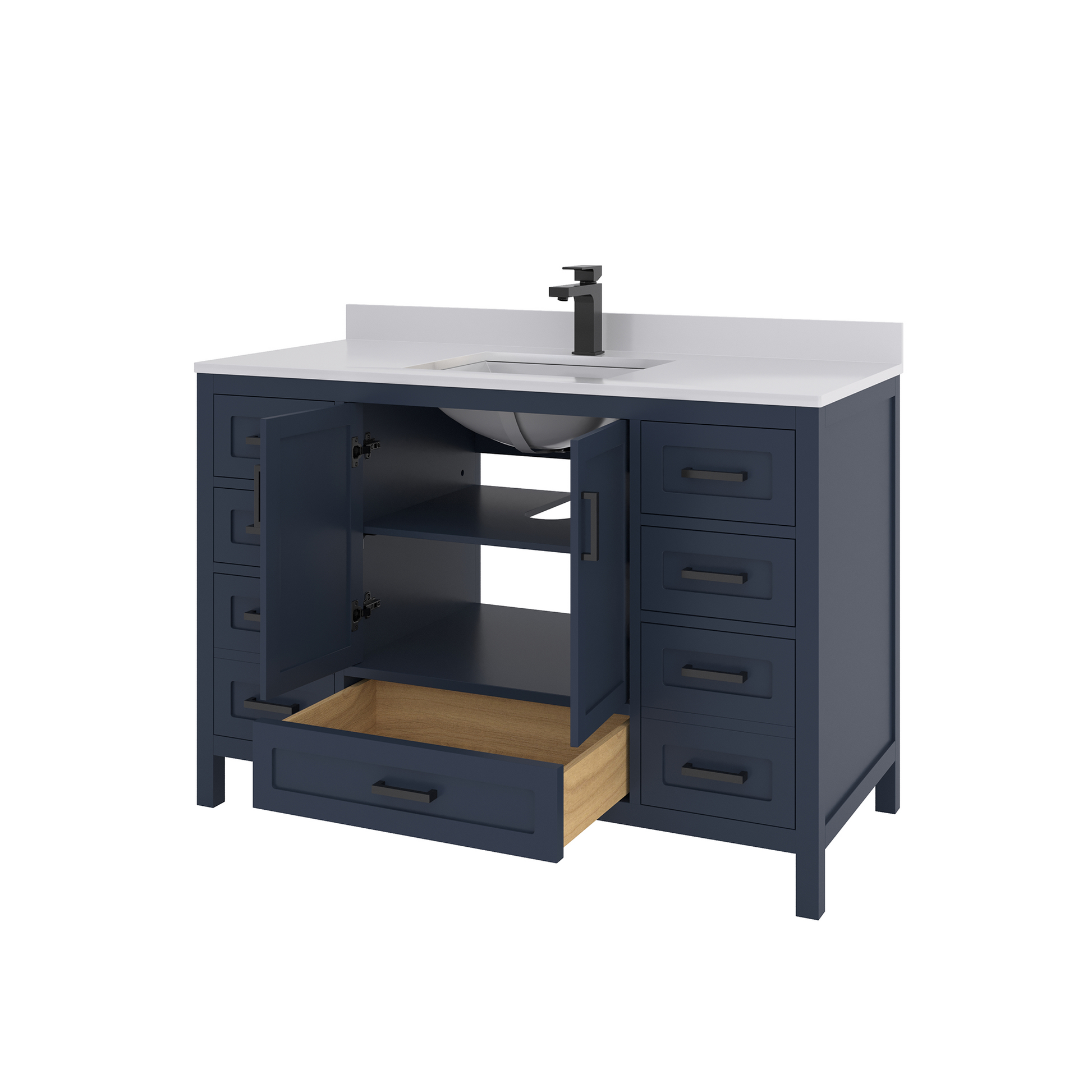 Material & Build: This 48” W x 22” D x 32.75”H - wooden bathroom vanity is made of a solid natural wood material frame for strength and long-lasting durability. The HDHMR wood panels are a premium engineered wood that offers superior durability and moisture resistance, making it suitable for long term use in humid conditions. This 48-inch bathroom vanity is hand finished with an 8 stage Sherwin Williams painting process, which guarantees excellent durability, moisture resistance, and long-wear protection.