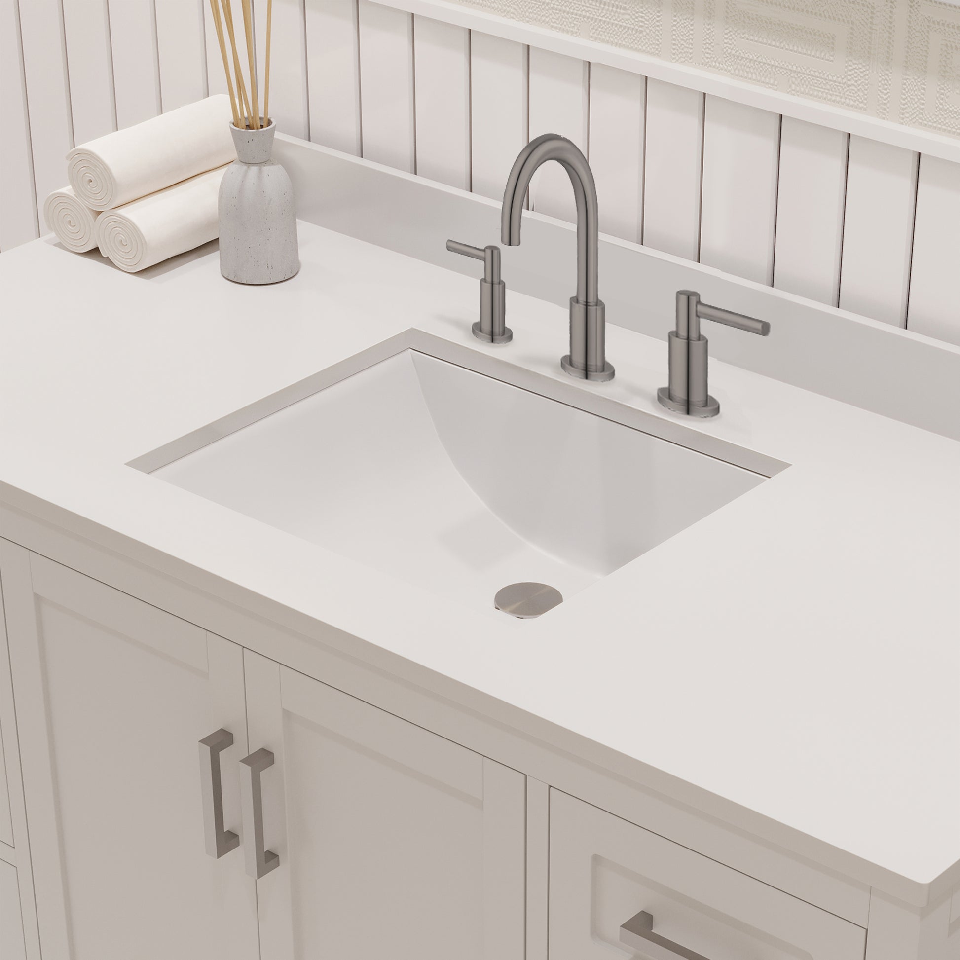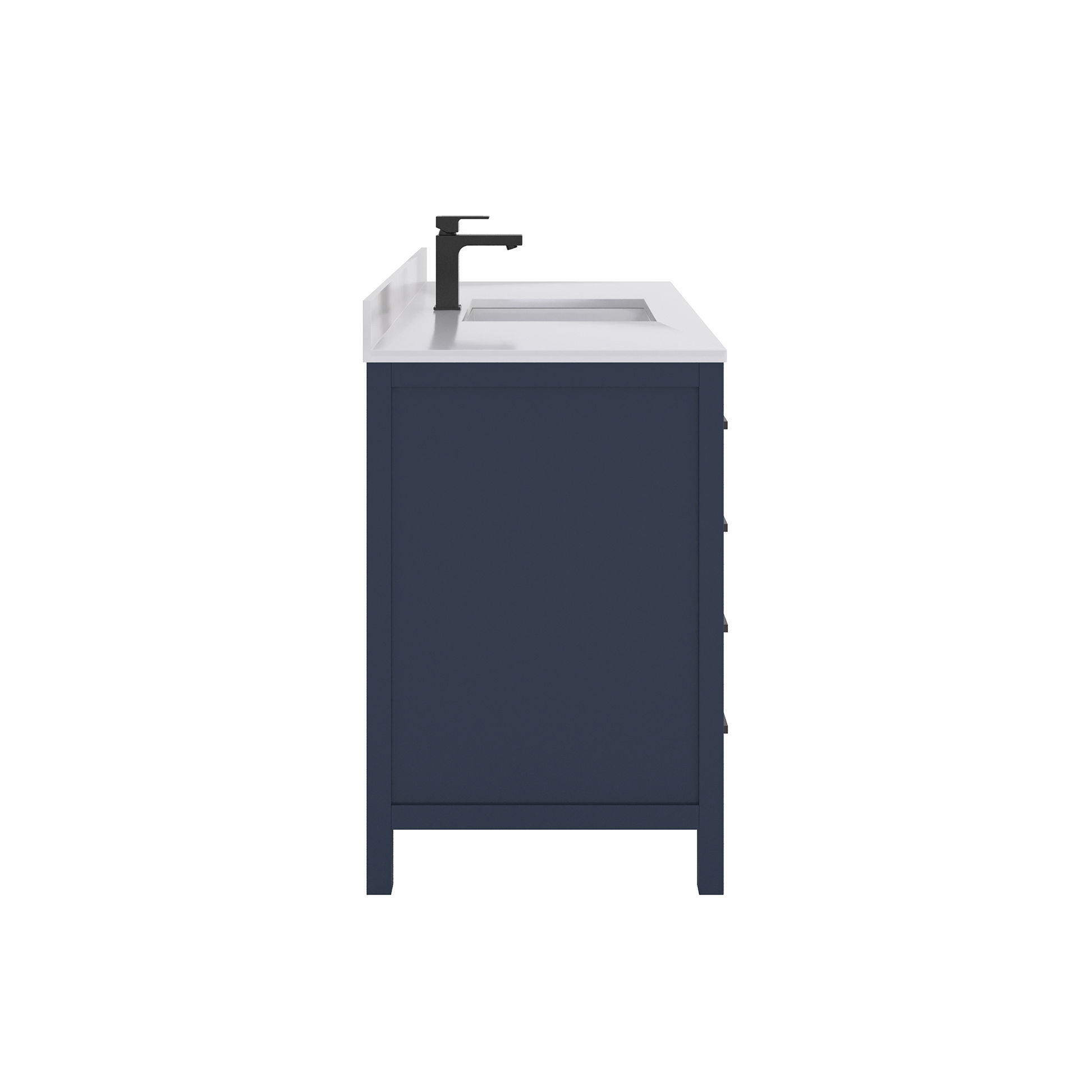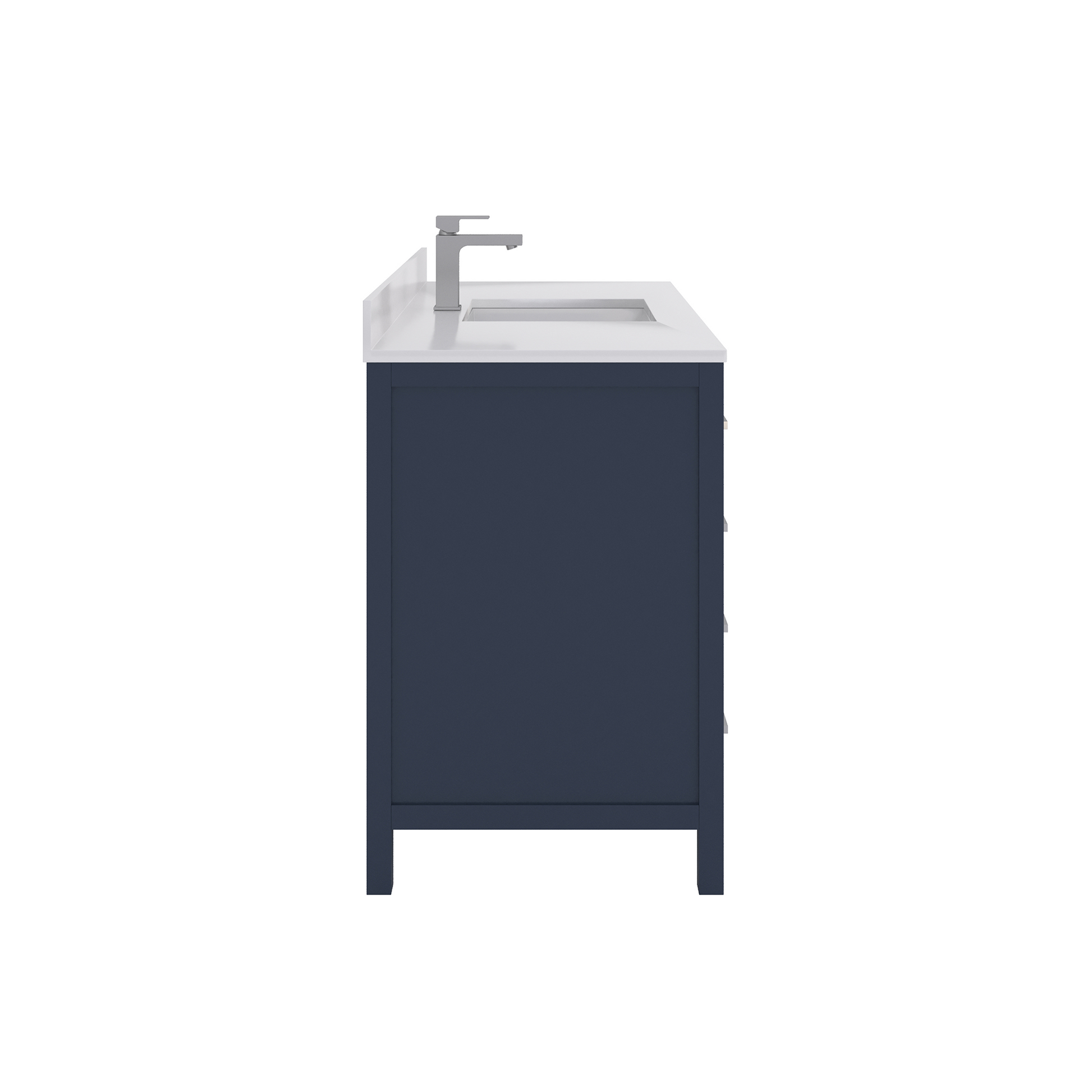 Countertop & Sink: Topped with a stain resistant quartz countertop features a single rectangular modern ceramic sink that adds style and functionality to your bathroom and making it simple to maintain. For that high end look and feel, white quartz provides a luxurious non-porous, surface that resistant to moisture, stains and fog. The countertop is complete with a matching, cohesive backsplash that protects your walls from water damage. Unlike MDF or particleboard vanities, our products are produced with 100% recyclable eco certified materials. This not only makes it a greener choice, but also a lifelong investment that will beautify your space for years to come.