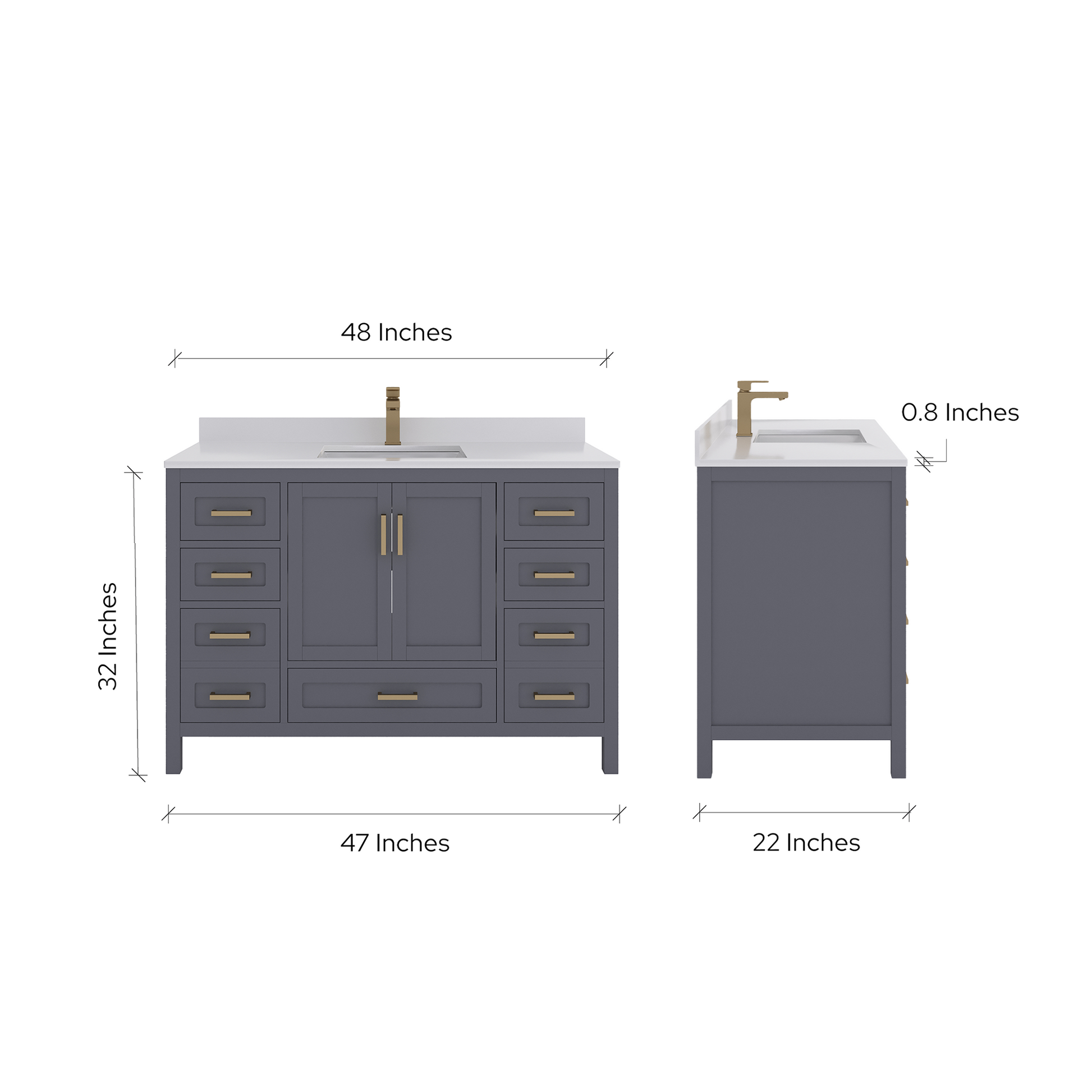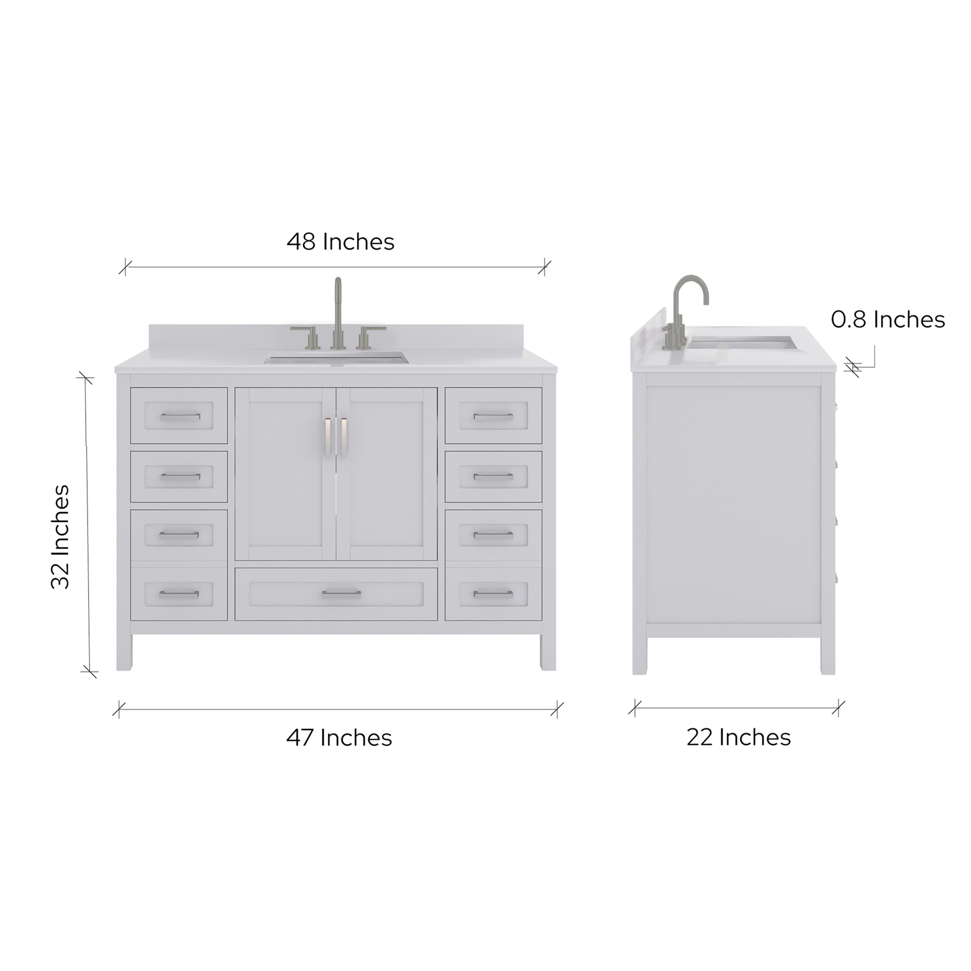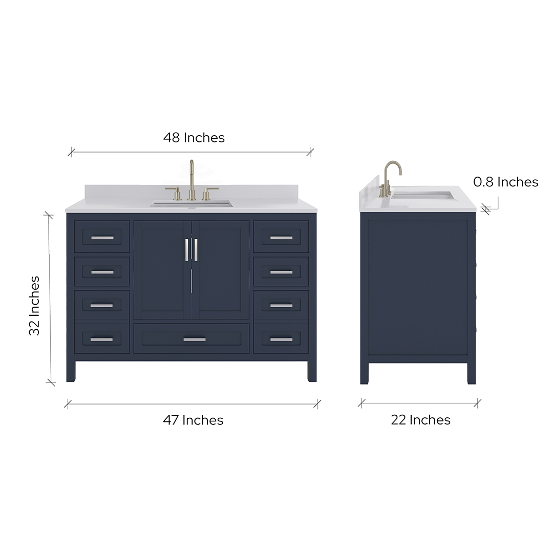 Countertop Dimensions: 48"W x 22"D x 0.75"H