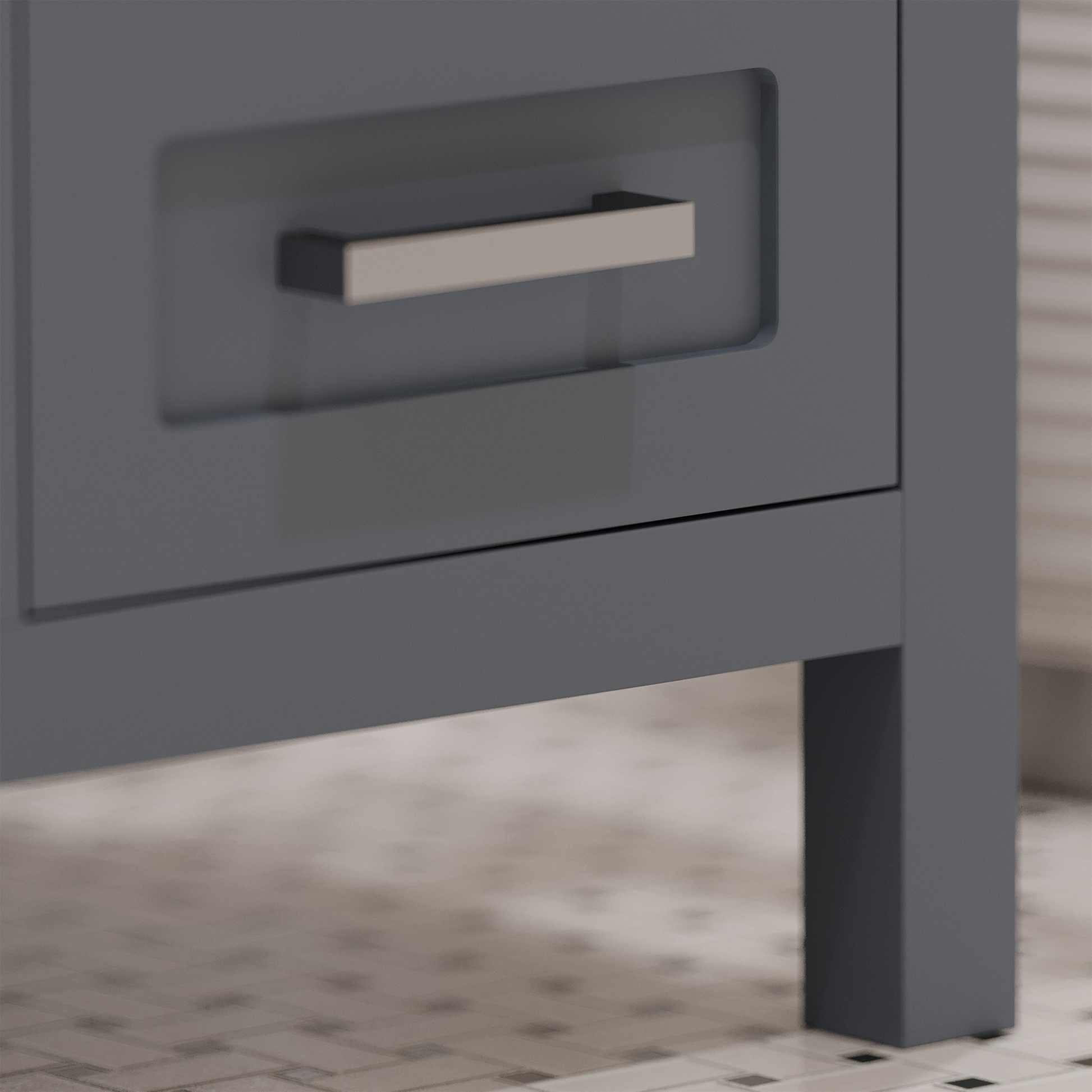 - Soft-closing doors and drawers with A+ grade hinges to prevent slamming and minimize noise