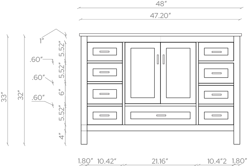 Cabinet Dimensions: 47.25"W x 21.75"D x 32"H