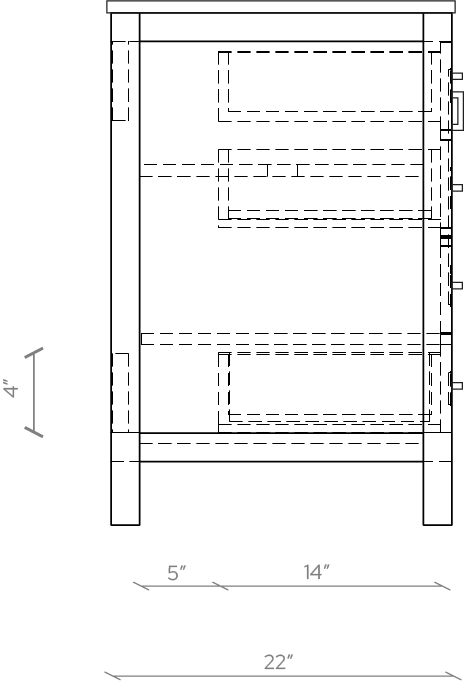 Large Drawer Interior: 19.5"W x 13.75"D x 4"H